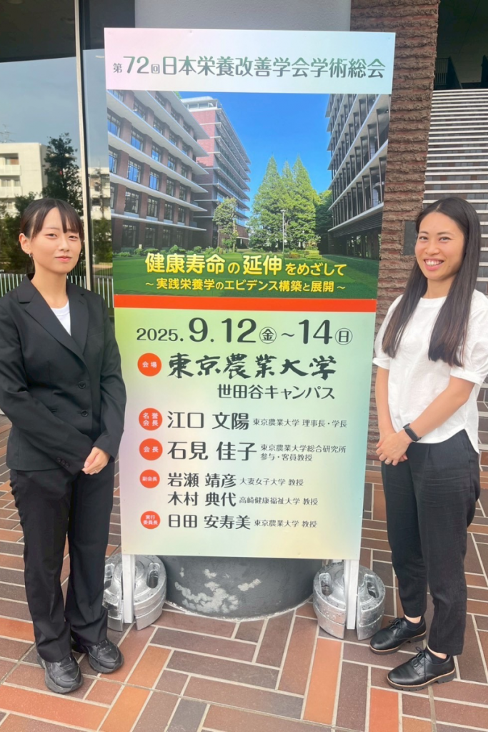 お知らせ2025.09.16 第72回日本栄養改善学会学術総会でフードデザイン学科の学生さんが発表いたしました。 令和7年9月12~14日に東京農業大学世田谷キャンパスで行われた第72回日本栄養改善学会学術総会に フードデザイン学科の4回生、左鴻さんが示説発表を行いました。 【演題】成人におけるネガティブな感情と嗜好の関連 当日、準備段階におきまして、たくさんのご指導やご質問をいただきましたこと、深く感謝申し上げます。 ありがとうございました。 « 前の記事へ 次の記事へ »