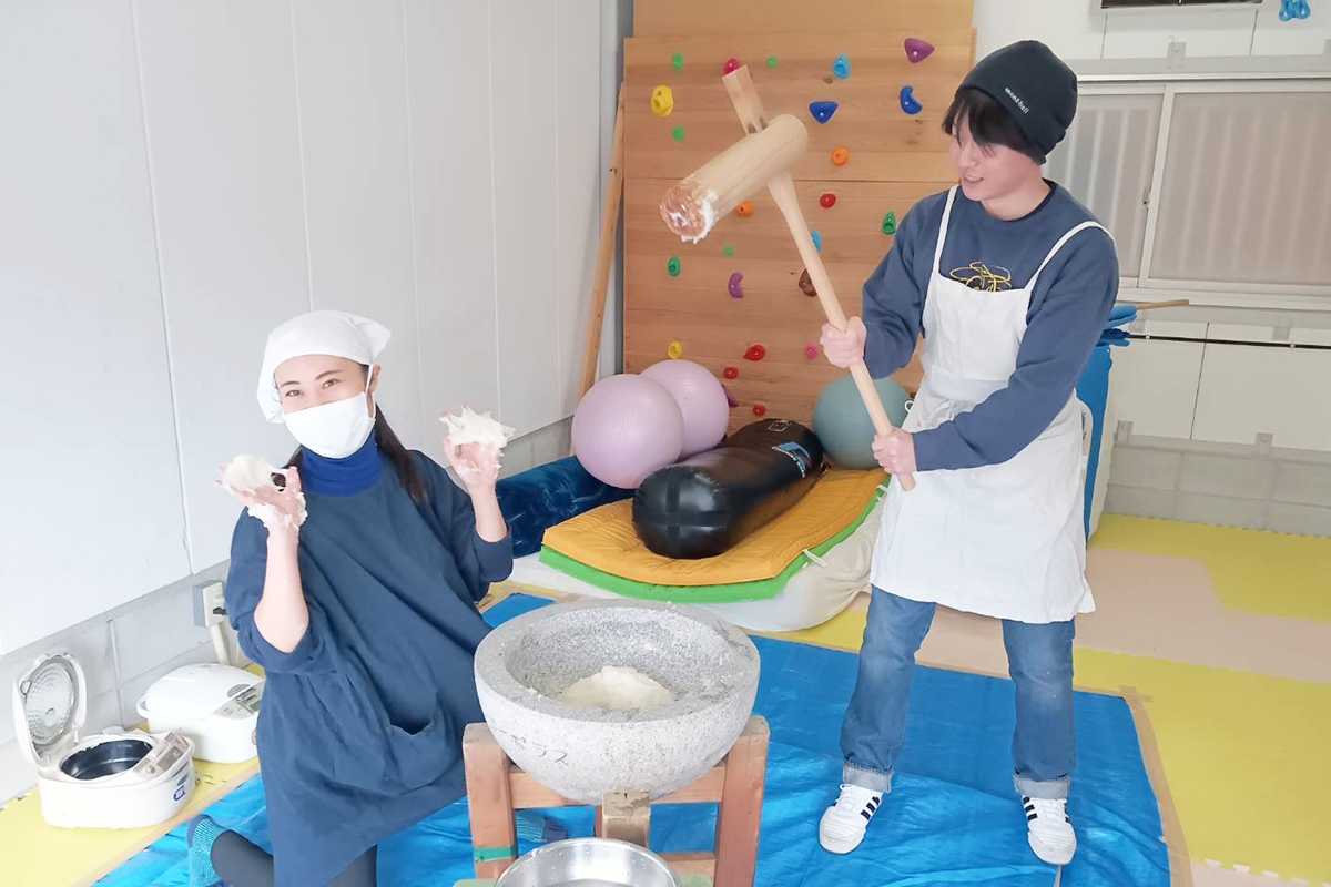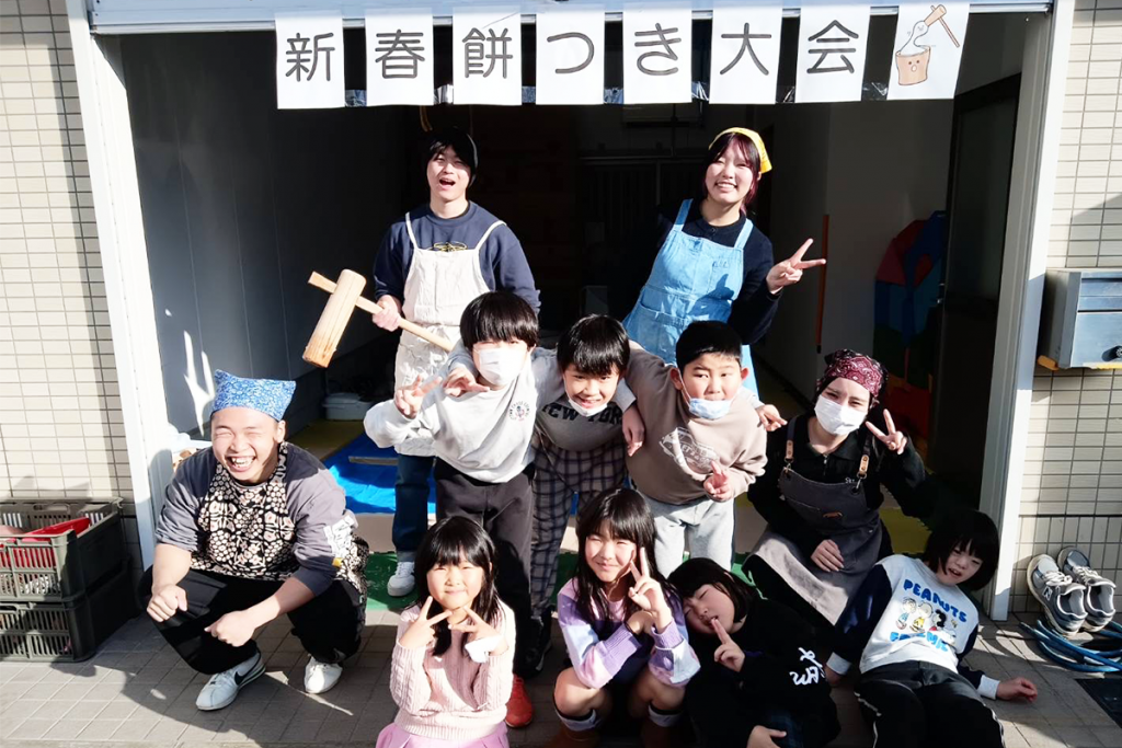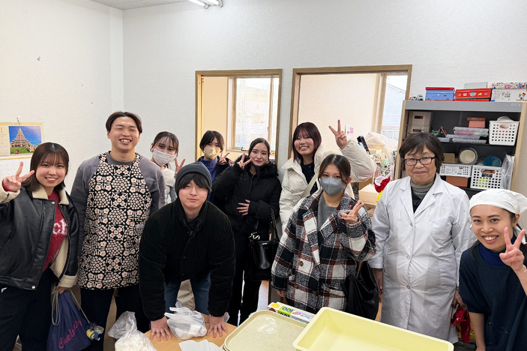お知らせ2026.01.14 🎍こどもたちと餅つき大会をしました 令和8年1月6日(火)、本学栄養学部の授業「食育実践演習Ⅰ・浦田研究室のゼミ」において、 大阪市にある放課後等デイサービスに通う子どもたちとともに餅つき大会を実施しました。 学生たちは餅つきの準備や進行を担当し、こどもたちと一緒に食の楽しさを体験しました。 また、学生が作成した食育をテーマにした紙芝居も披露され、会場は大いに盛り上がりました。 笑顔あふれる、実践的な学びの機会となりました。 発信部署:栄養学部 « 前の記事へ