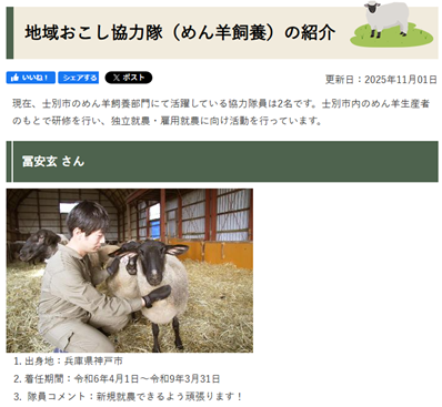 令和6年に卒業された冨安玄さんも同資格を取得し、現在は北海道士別町の地域おこし協力隊として頑張っています。写真を添付します。