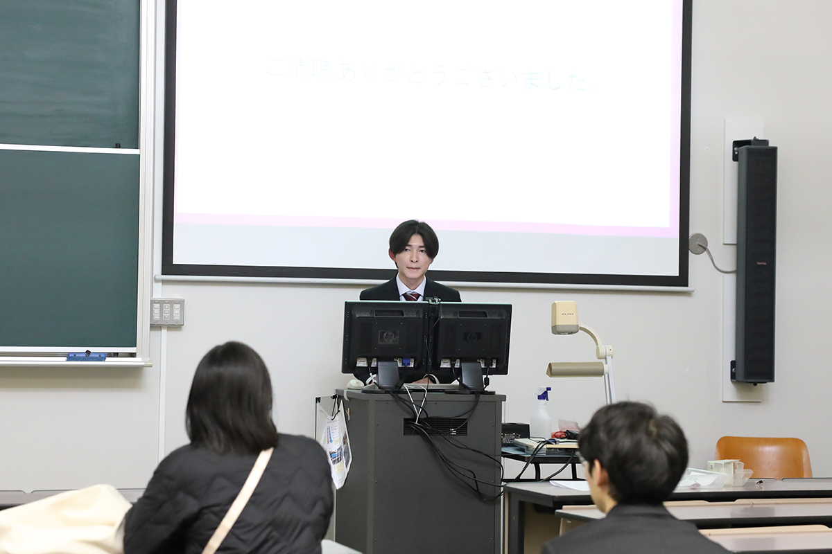 お知らせ2026.02.20 心理学部 卒業研究発表会開催 2月5日(木)に心理学部の卒業研究発表会が開催されました。 4回生にとって本発表会は、大学生活の集大成となる貴重な機会となり、 取り組んだ研究の成果を堂々と発表し、教員や学生からの質疑にしっかり応対しました。 また、3回生の学生も聴講し、今後に向けて大きな刺激を受けた様子がうかがえました。 4回生の皆さん、本当にお疲れさまでした! 発信部署:心理学部 « 前の記事へ