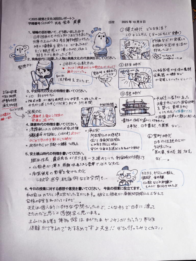 「経営と文化」授業での学生のユニークなレポート紹介①