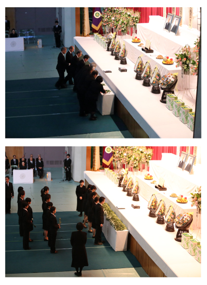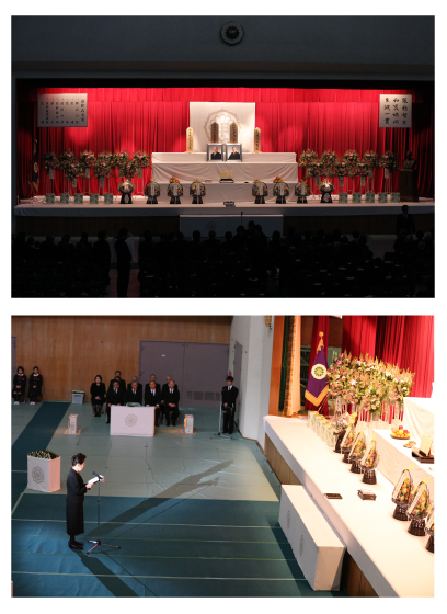 追悼式第1部においては、久米知子理事長・学院長が追悼の辞を述べ、各代表による献花が行われました。
