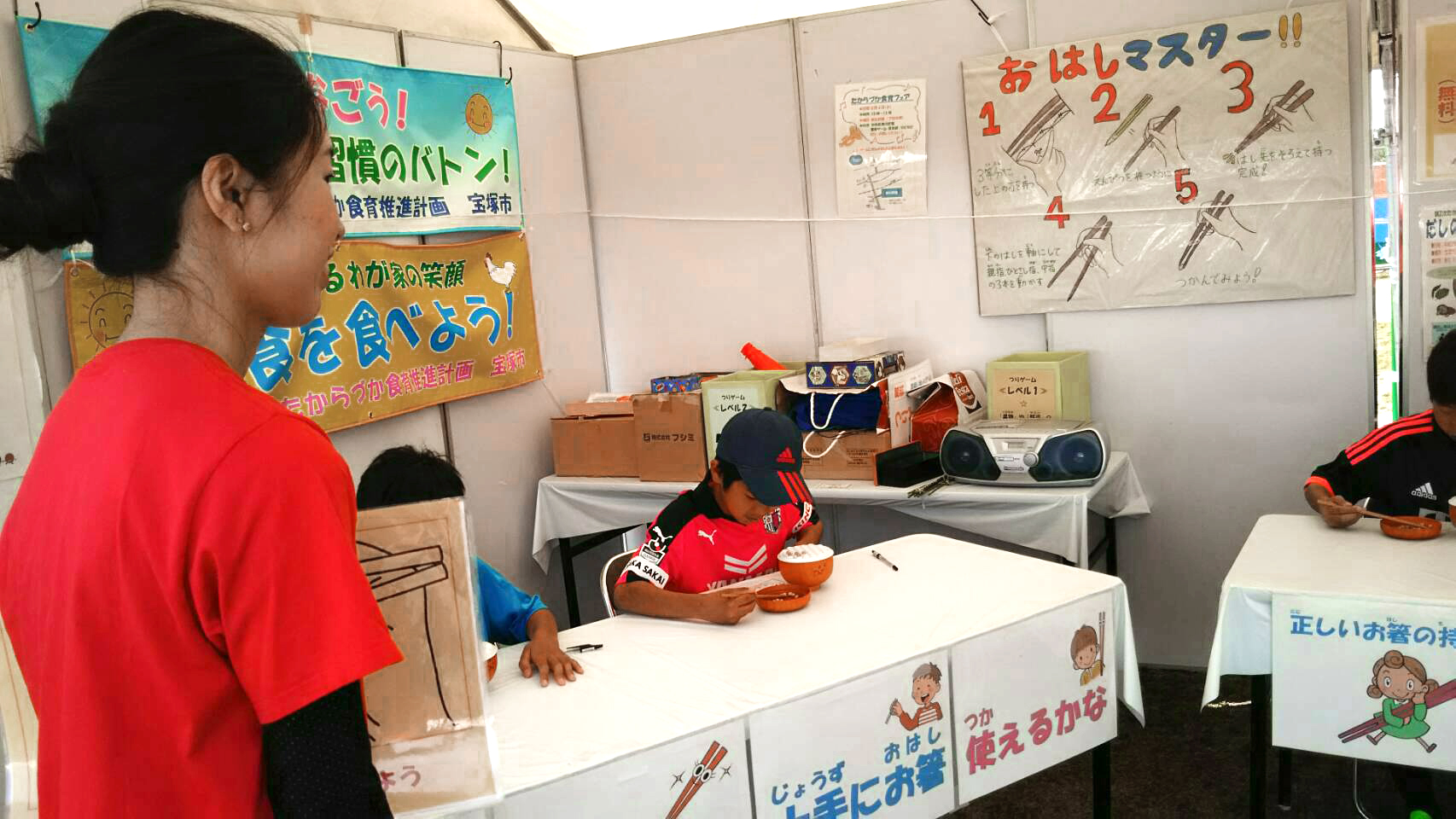 宝塚市では、「花と緑のフェスティバル」を開催しています。このフェスティバルの会場を使って、たからづか食育推進計画の啓発活動の取組みの一環として食育ブースが平成28年4月23日(土)、24日(日)の両日、宝塚市末広中央公民館に出店されました。