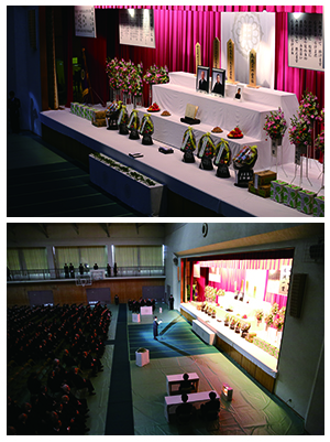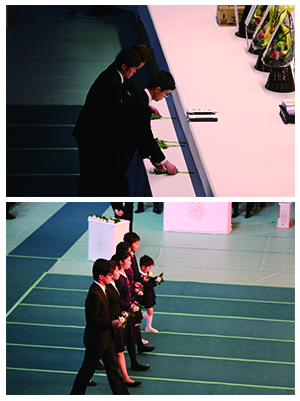 追悼式には、ご遺族、ご来賓、学院の全ての校園の後援会等の代表、教職員、学生、生徒、児童、園児等約800名が参加し、久米知子理事長・学院長が追悼の辞を述べ、各代表による献花が行われました。