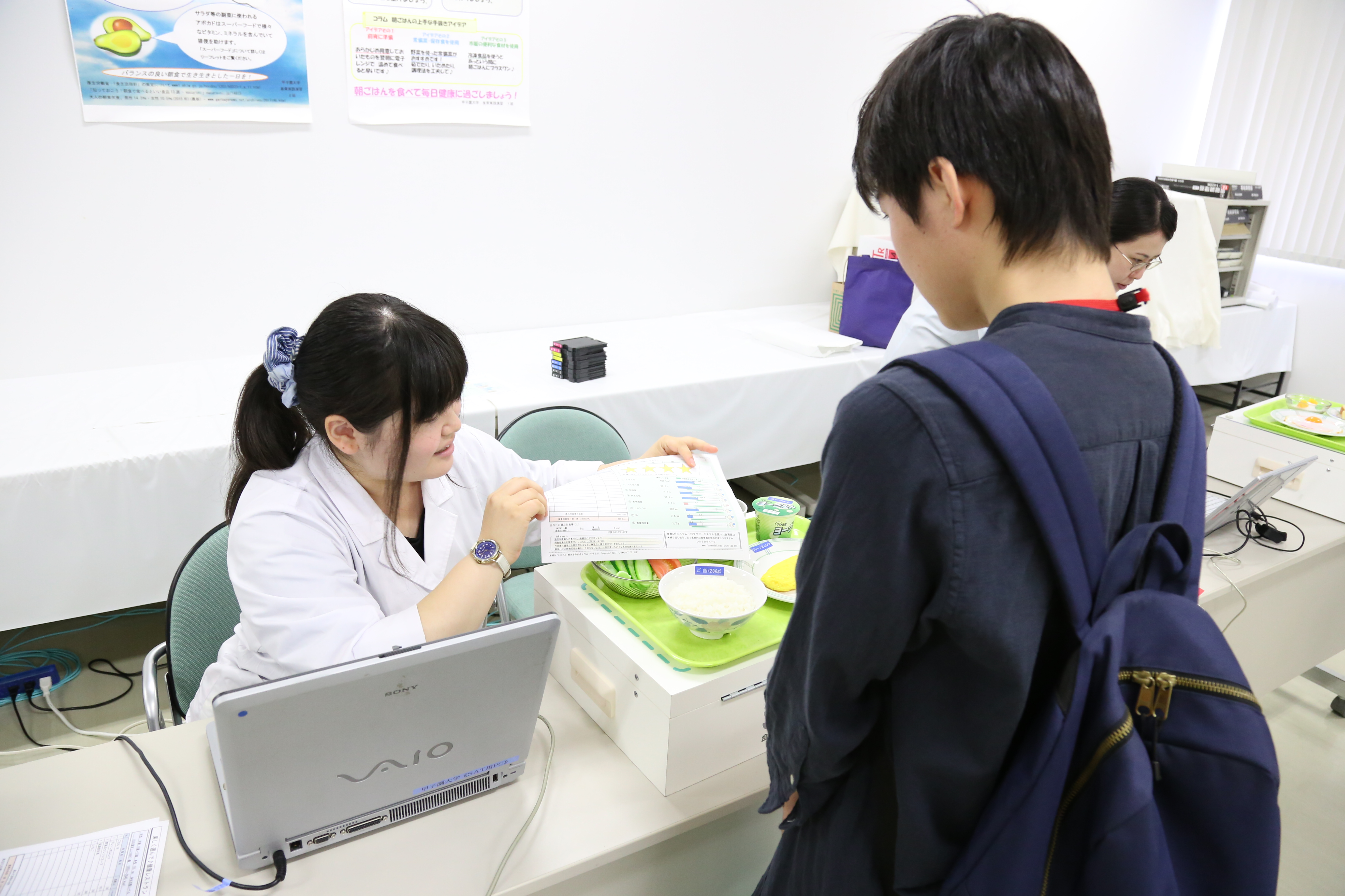 栄養学部では「豊かな生活を育む健康チェック」をテーマに、「この食事は何キロカロリー?」など様々なプログラムを実施しました。