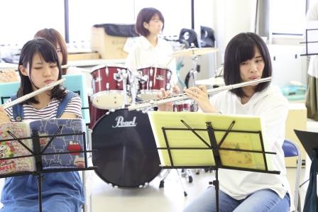 夏のオープンキャンパスと、11月3日(金・祝)に開催される紅葉祭(大学祭)での演奏を目指して、岡邑専任講師の指導のもと、練習に余念がありません。昨年秋には、「KOBE六甲全山縦走大会」のゴール地である宝塚駅前で、ボランティア活動として完走者を演奏で迎えた実績を持っています。