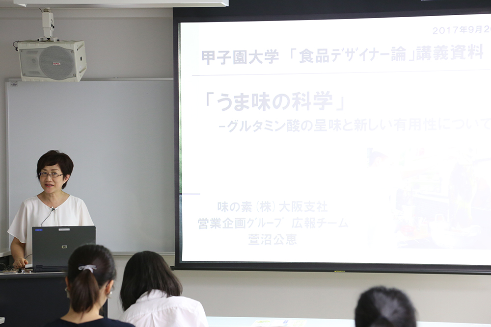 9月20日(水)、「食品デザイナー論(栄養学科・フードデザイン学科3回生)」で、味の素株式会社営業企画部の萱沼公恵マネージャーに特別講義を行っていただきました。