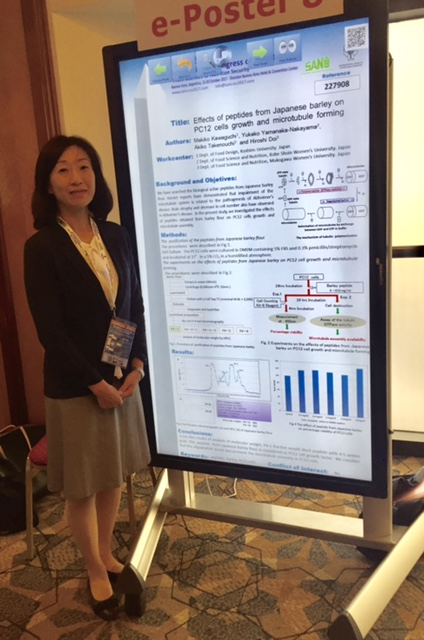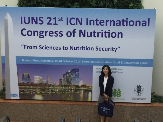 栄養学部フードデザイン学科の川口准教授が、10月15日から20日まで開かれていた「第21回国際栄養学会議」に参加しました。この学会は4年に1度開催される栄養学関係の最も大きな学会で、今回はアルゼンチンのブエノスアイレスで行われました。19日には“Effect of peptides from Japanese barley on PC12 cells growth and microtubule forming” (日本産大麦由来ペプチドがPC12細胞の増殖および微小管形成に及ぼす影響)と題してポスター発表を行い、たくさんの質問やコメントがありました。