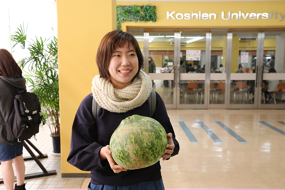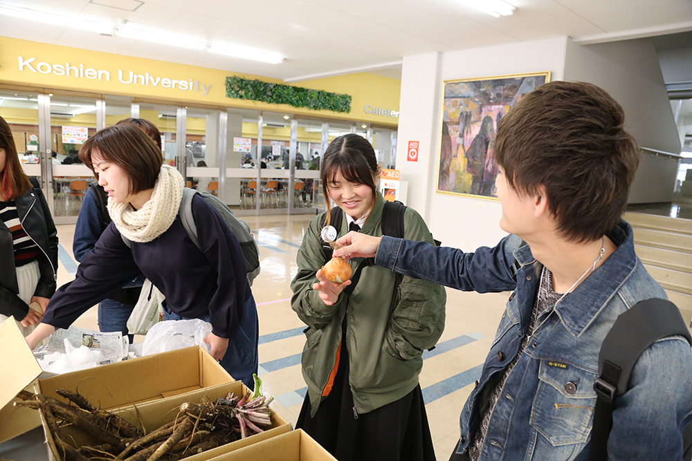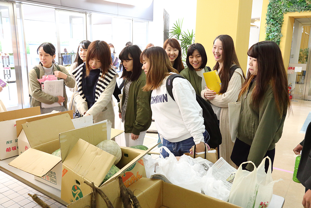 30日の昼休みに、食堂前で配布会が行われました。学生が集まって来て、野菜はあっという間になくなりました。藤田さん、ありがとうございます。