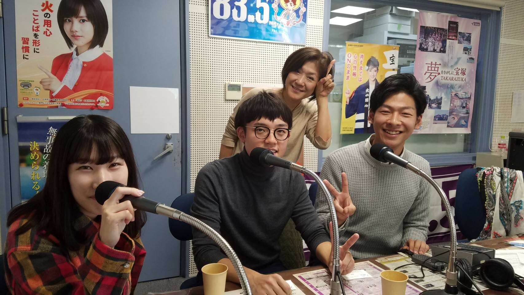 「トリプルハート」の部長で栄養学部3回生の尾上晃斗君、栄養学部3回生の長濱飛鳥さん、心理学部3回生の清水洸佑君の3人が、11月2日、FM宝塚の「たからづか8丁目35番地」に出演し、ボランティア活動について語りました。