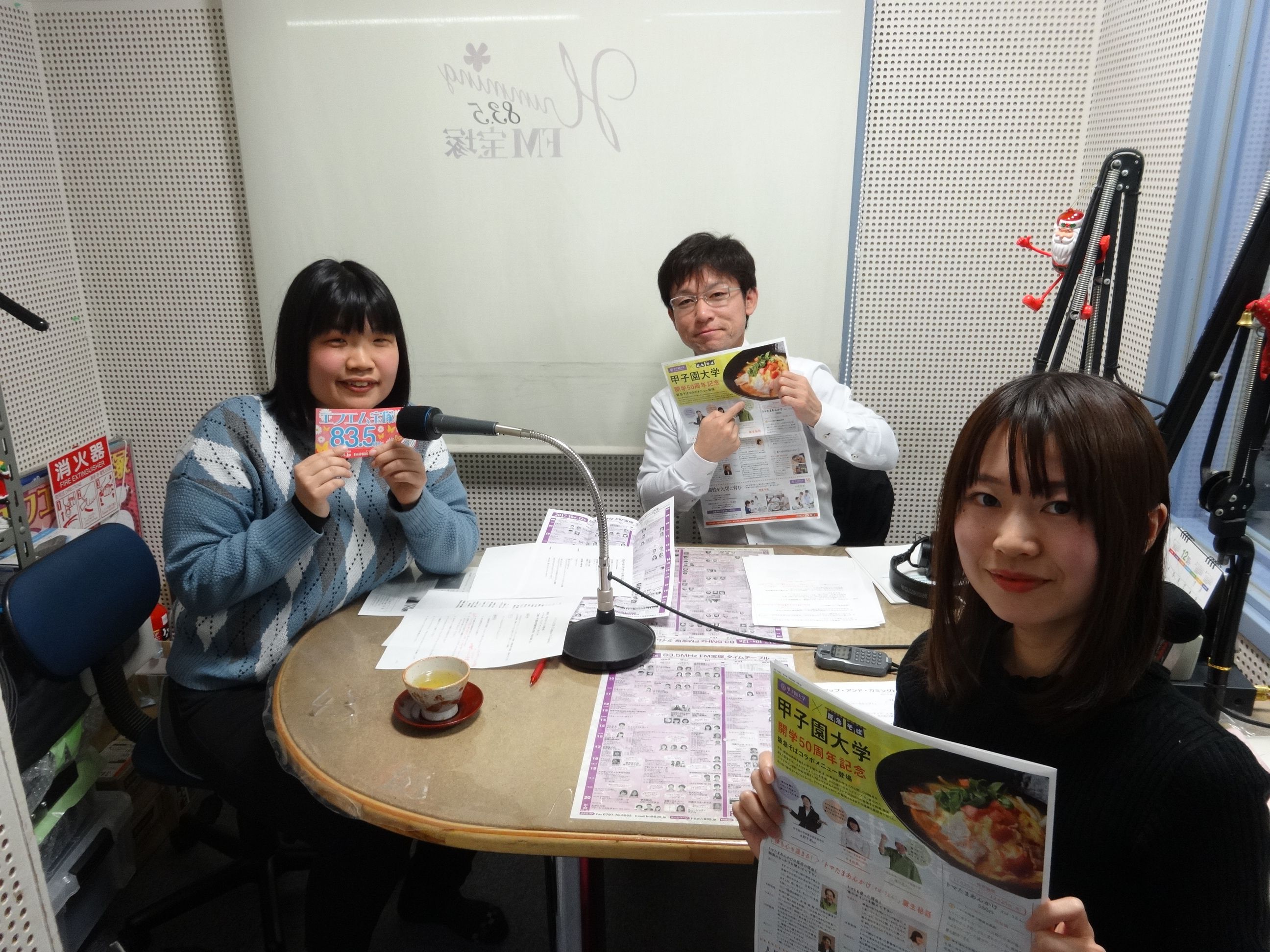 そんな人気メニューを考案した3回生の中本佳那さんが12月5日、FM宝塚の「Campus×Compass」という番組のゲストとして招かれ、収録を行いました。トマトを使ったレシピの開発秘話から現在学んでいる学問、将来の夢など終始笑顔で取材を受けました。「そばは山椒、うどんは七味をかけるといっそうおいしく食べられます」とのこと。『トマたまあんかけそば・うどん』は、阪急そば若菜西宮北口店(今津線宝塚方面行きホーム内)で、今月25日までの期間限定販売です。
