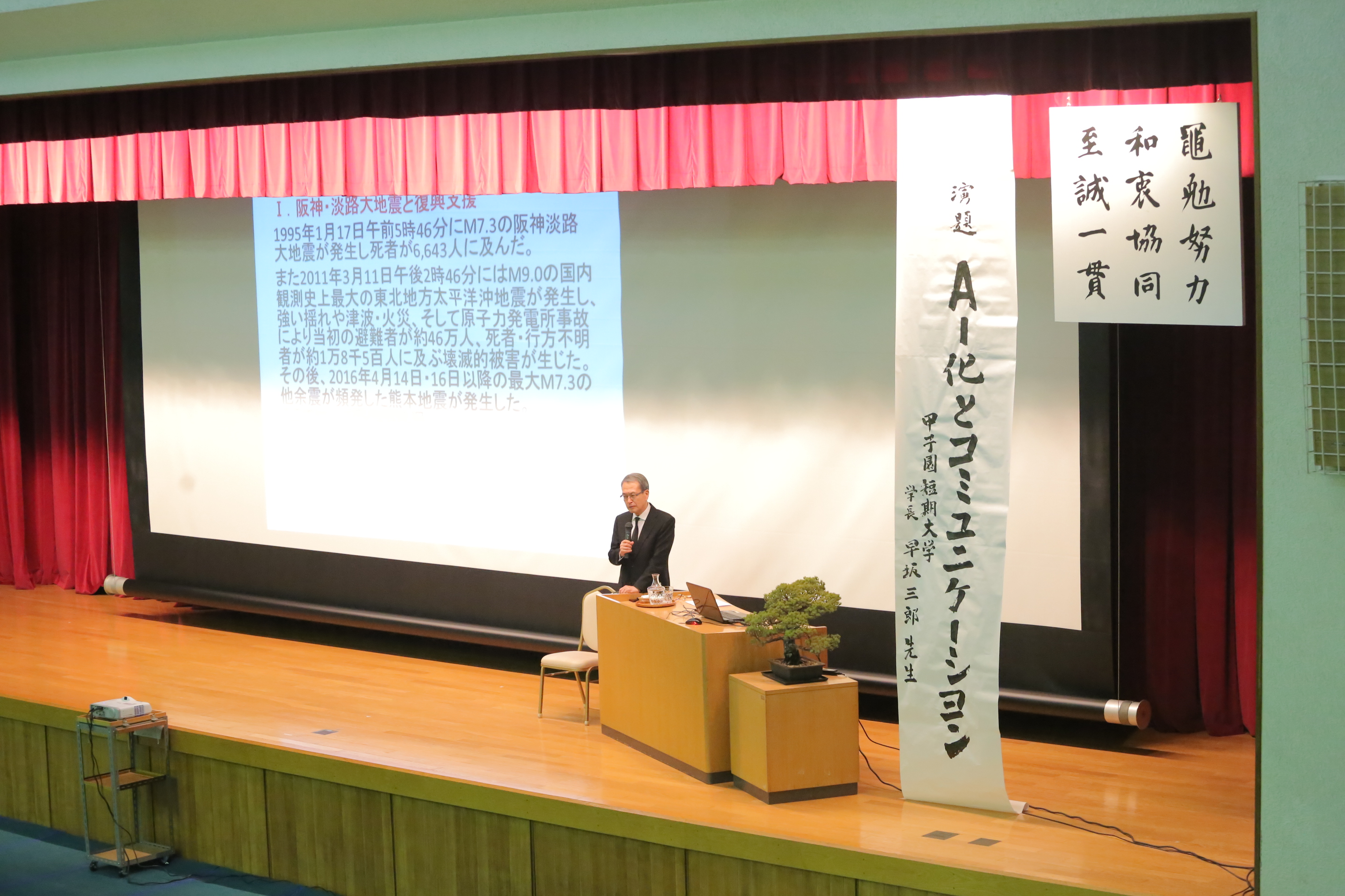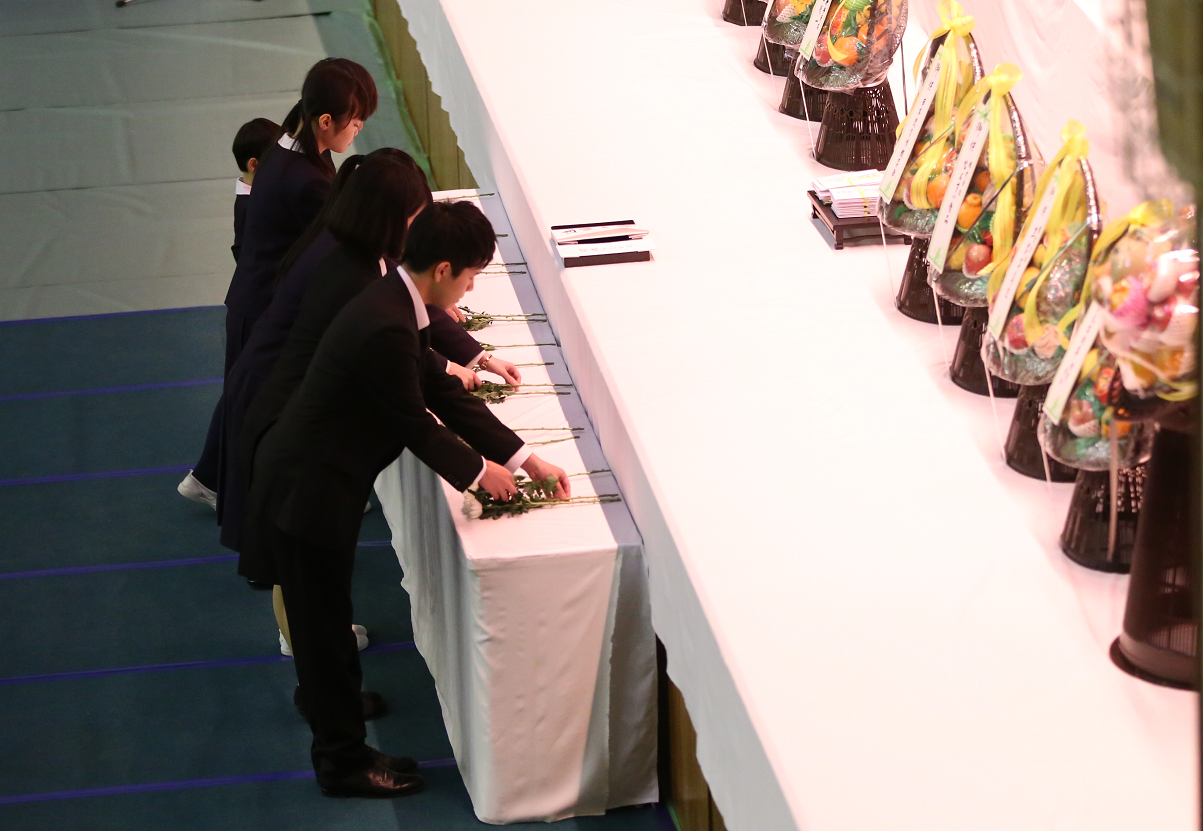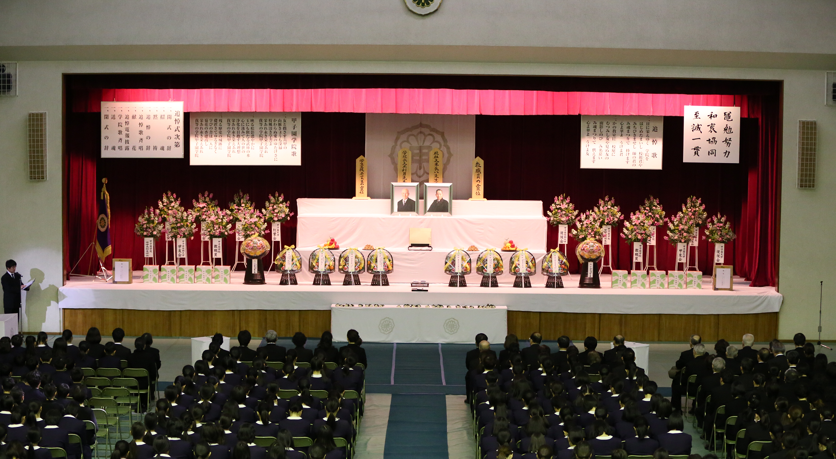 お知らせ2018.03.3 久米長八校祖並びに久米利男前学院長追悼式が挙行されました 平成30年3月3日(土)午前10時から甲子園学院高等学校体育館において挙行されました。 追悼式には、ご来賓、教職員、学生、生徒、児童、園児ら約740名が参加。久米知子理事長・学院長が追悼の辞を述べ、各代表による献花が行われました。 引き続いて、甲子園短期大学学長の早坂三郎教授の記念講演『AI化とコミュニケーション』が行われました。 発信部署:事務局 « 前の記事へ 次の記事へ »