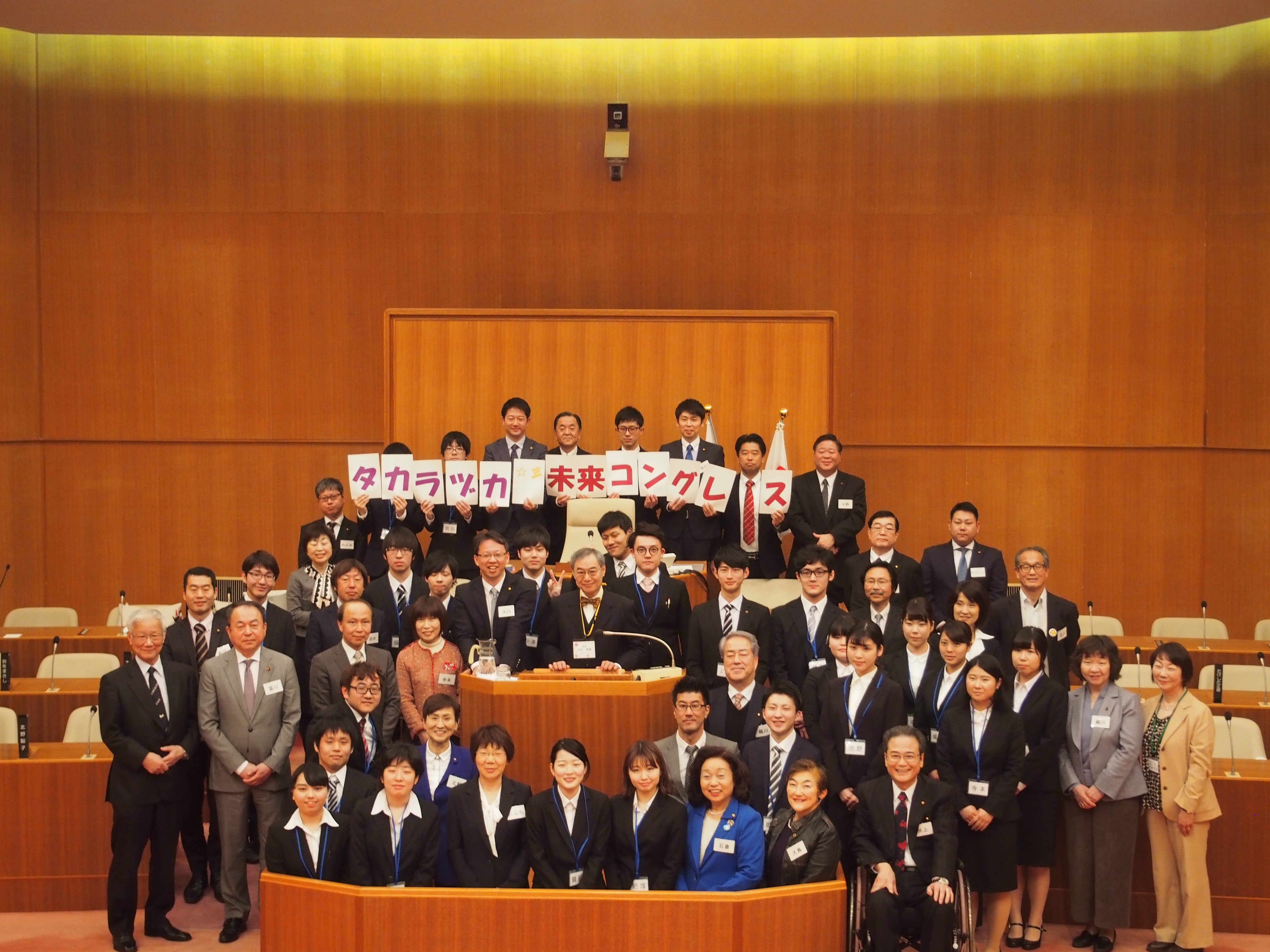 3月11日、甲子園大学の学生24人が宝塚市の市議会議員24人と意見交換をしました。大学生との意見交換会は、同市議会では初めての試みです。「学生生活と宝塚市の地域行政」「管理栄養士が宝塚市にかかわること」「地域の農業と食品」「市のメンタルヘルス行政」というテーマで、4グループに分かれて、ワークショップ形式で実施。大学生視点で、宝塚市政に関して多くの提案をし、活発な議論が展開されました。その後は、各グループの代表者が、市議会議場で堂々と成果を発表しました。