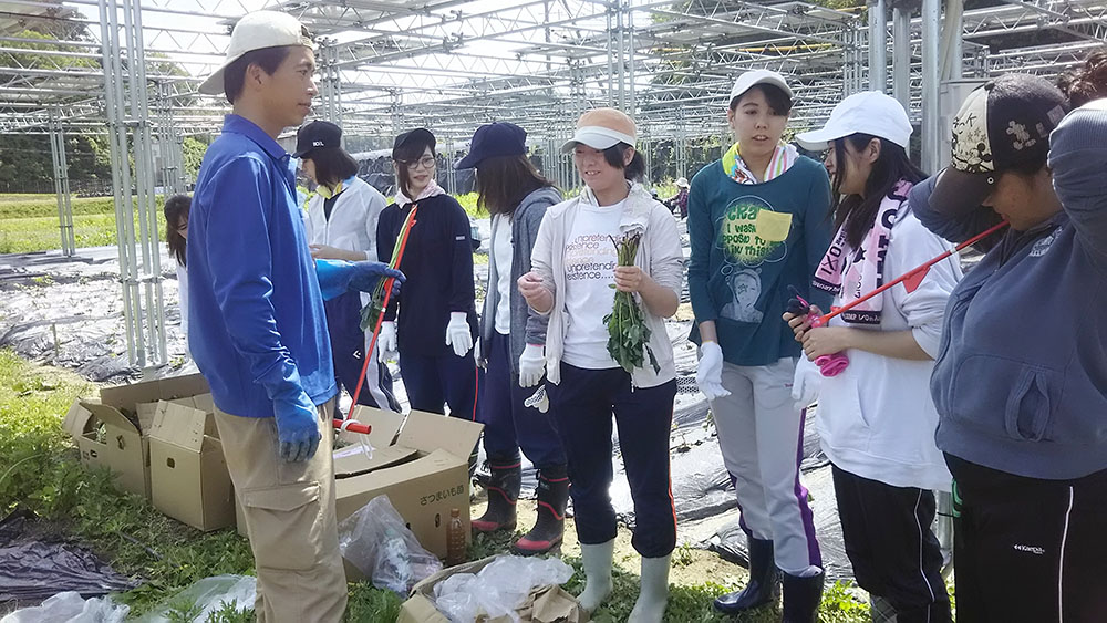 5月12日、本学の学生(「食と地域の実践演習」履修学生、卒研学生)が、西谷のソーラーシェアリング市民農園で、さつまいもの苗の植え付けを行いました。この農園は、先月に畝立て、マルチ張りを行ったところです。今回は、5種類のさつまいも種(「クィックスイート」「べにはるか」「安納芋」「パープルスイートロード」「こがね千貫」)、約1250本を14区間の広さに植え付けました。