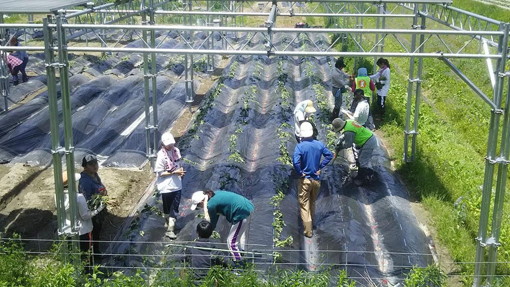 ソーラーシェアリング農園でさつまいもの植え付けを行いました