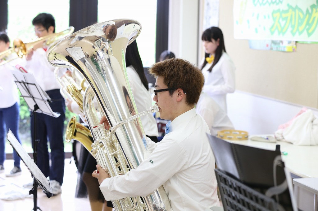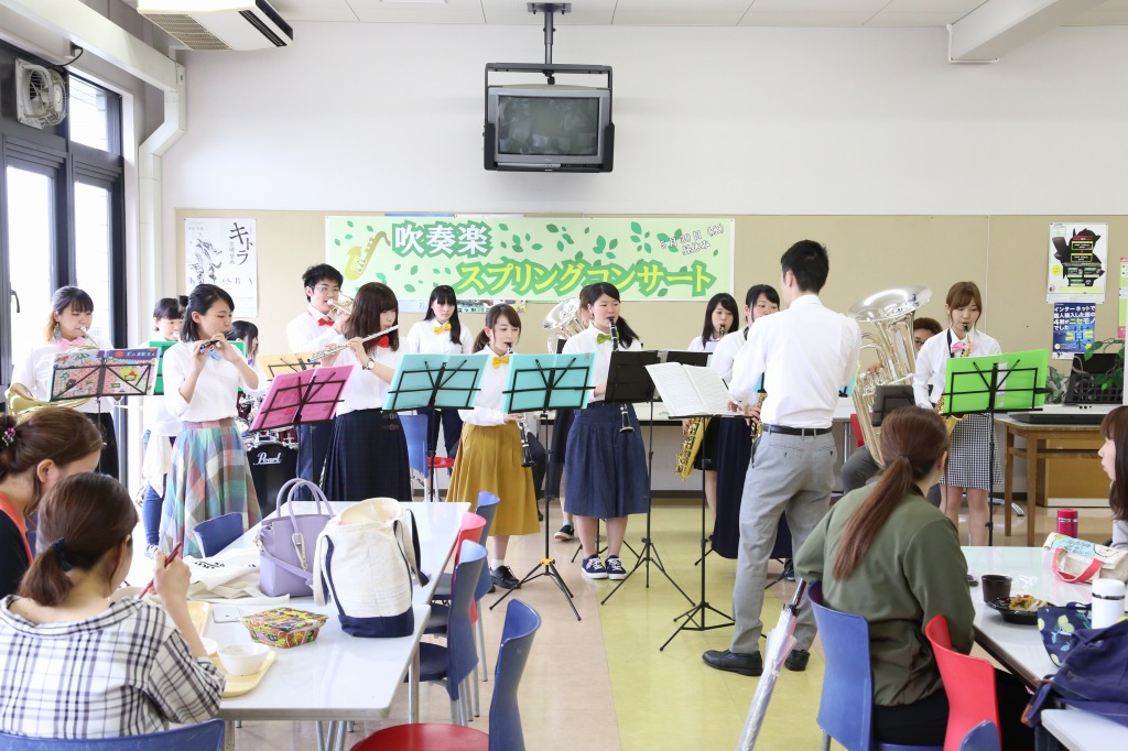 お知らせ2018.05.30 吹奏楽部がスプリングコンサートを開きました 5月30日、吹奏楽部が食堂でスプリングコンサートを開きました。演奏曲は「ドラえもん(星野源)」「春の童謡メドレー」「Paradise Has No Border」と梅雨入りを前に、春の名残を感じさせてくれるような選曲。昼休みを利用したミニコンサートでしたが、小雨模様の天気を吹き飛ばしてくれるような爽やかな演奏で、学生、教職員を楽しませてくれました。 発信部署:事務局 « 前の記事へ 次の記事へ »