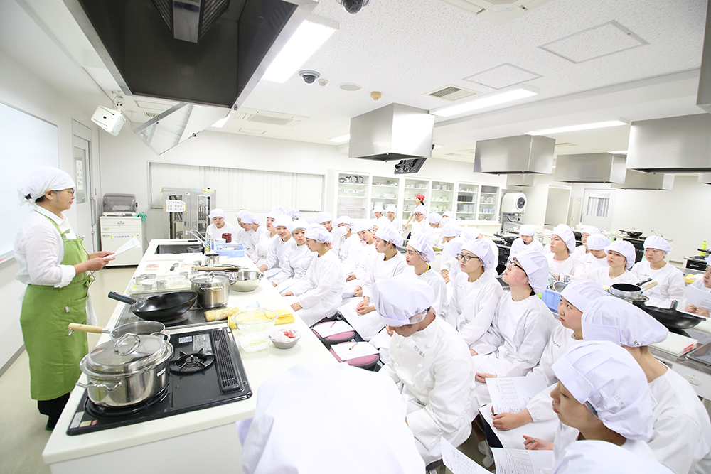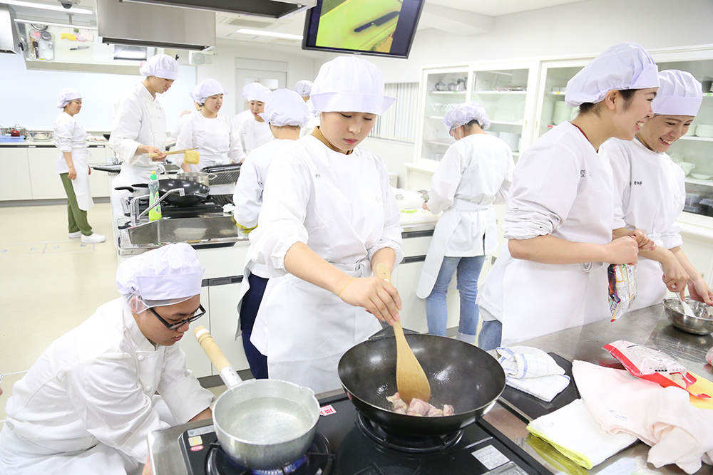 栄養学科1回生が冷凍食品の講演を受講後、調理実習を行いました