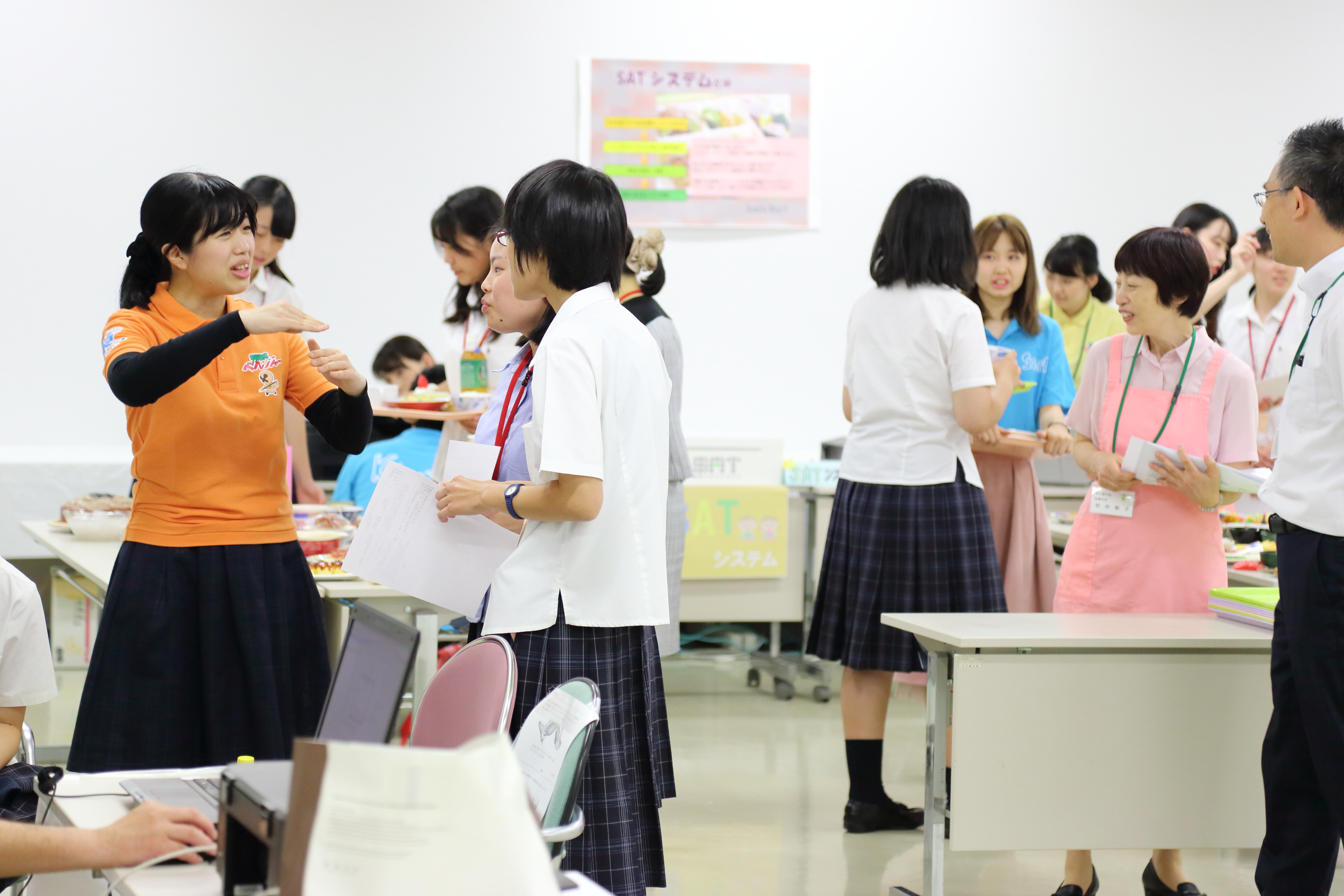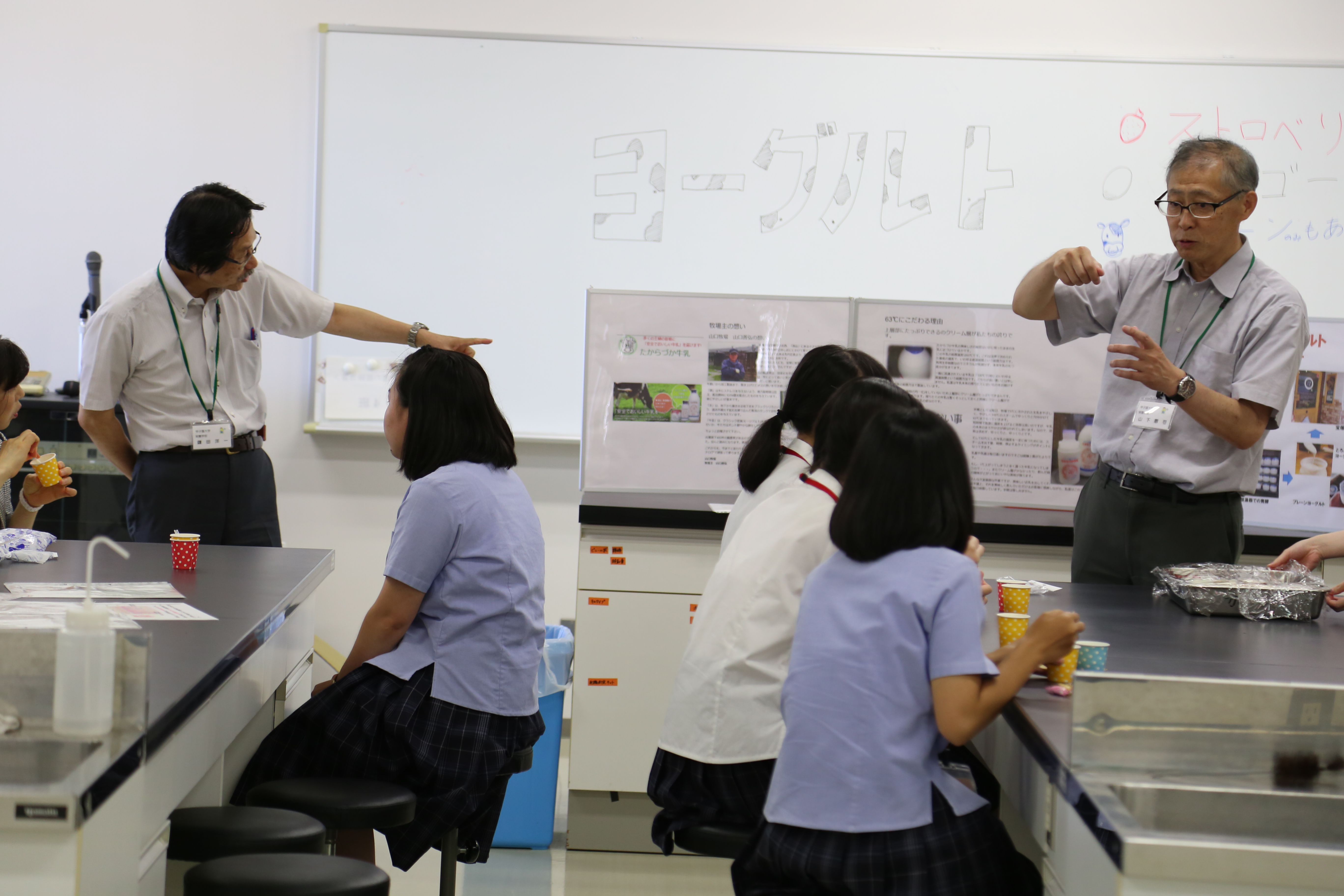 栄養学部は食育SATシステムを使って普段の食生活をチェックしたり、(有)たからづか牛乳と共同開発したヨーグルトを味わってもらいました。