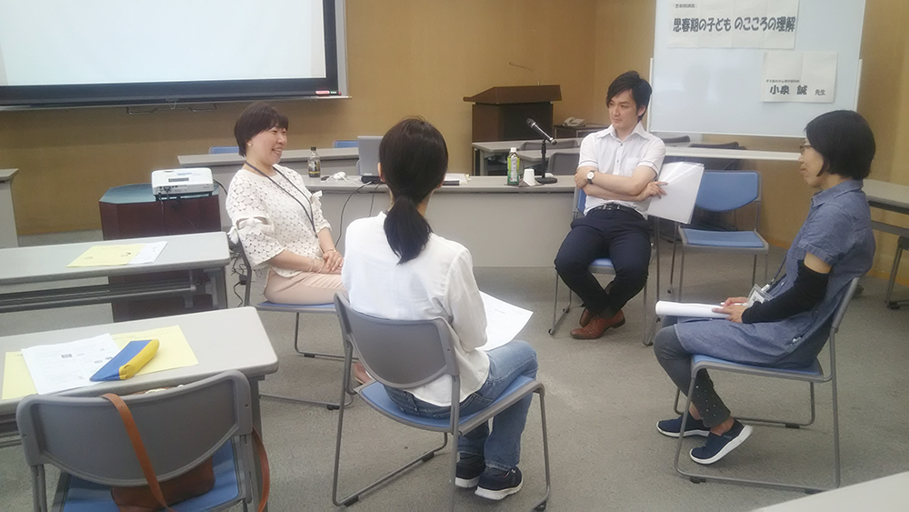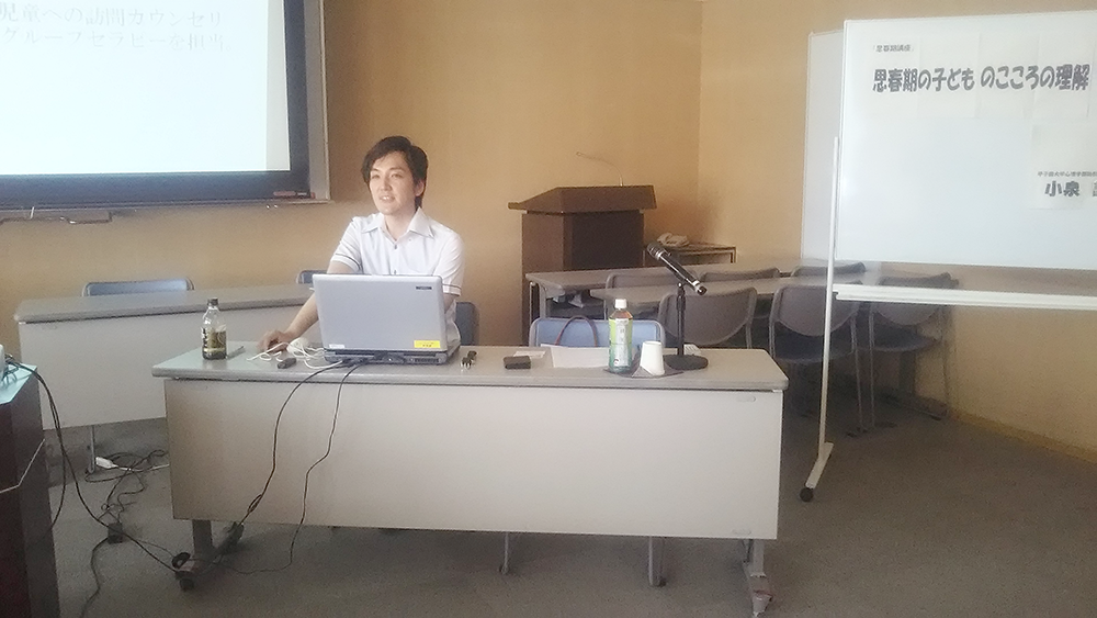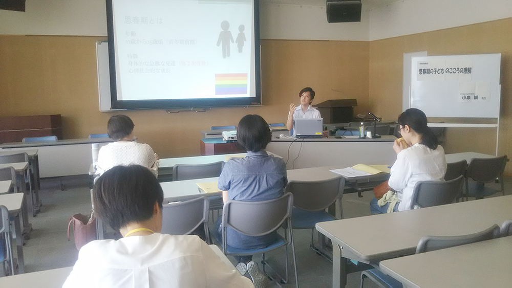 7月25日、10~15歳児の保護者を対象とした「思春期講座」(宝塚市子ども家庭支援センターと共催)をフレミラ宝塚で実施しました。今回は、2回連続講座の1回目で、「思春期の子どもは何を考えているの? ~ムズカシイ年ごろの子どもとの向き合い方~」がテーマ。前半は心理学部の小泉誠助教による「思春期の子どものこころの理解」という講話、後半は参加した保護者の方々がグループトークを行いました。グループトークでは、自分の子どもとの関わりの中で、普段感じている悩み・不安を出し合い、共有しました。それを通して、思春期を迎える子どもへの理解を深め、よりよい関わり方を考える機会となりました。