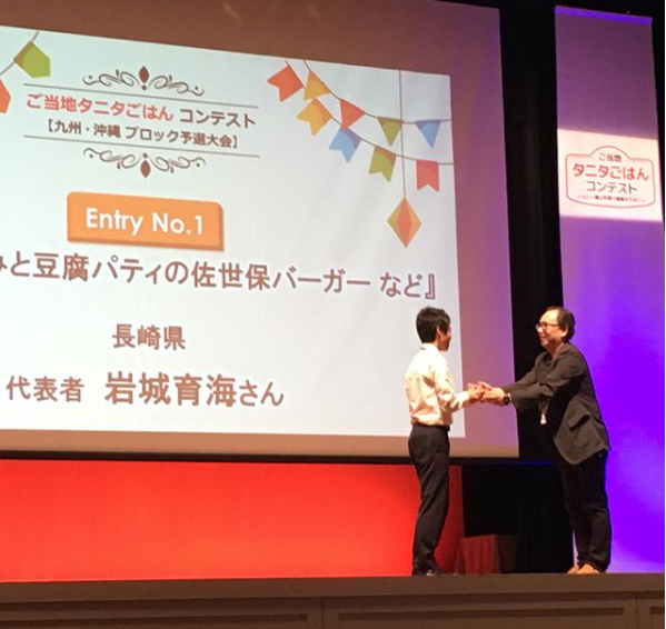 7月28日、「ご当地タニタごはんコンテスト」の九州・沖縄ブロック予選会が長崎県佐世保市のハウステンボスで開かれました。書類選考を通った10チームが同ブロックの予選会で競い、3チームが全国大会進出を果たしました。予選会には、本学からは3チームが参加。「鶏ささみと豆腐パティの佐世保バーガー」などのレシピを考案した栄養学部栄養学科3回生の岩城育海さんが予選会を通過しました。この模様は、読売新聞の長崎版でも紹介され、岩城さんの「素材の味を生かし、野菜をたくさん取れるように心がけた。全国大会では、長崎の郷土料理の良さを広められるように頑張りたい」というコメントと写真が掲載されました。10月に行われる全国大会での岩城さんの健闘を期待しましょう。