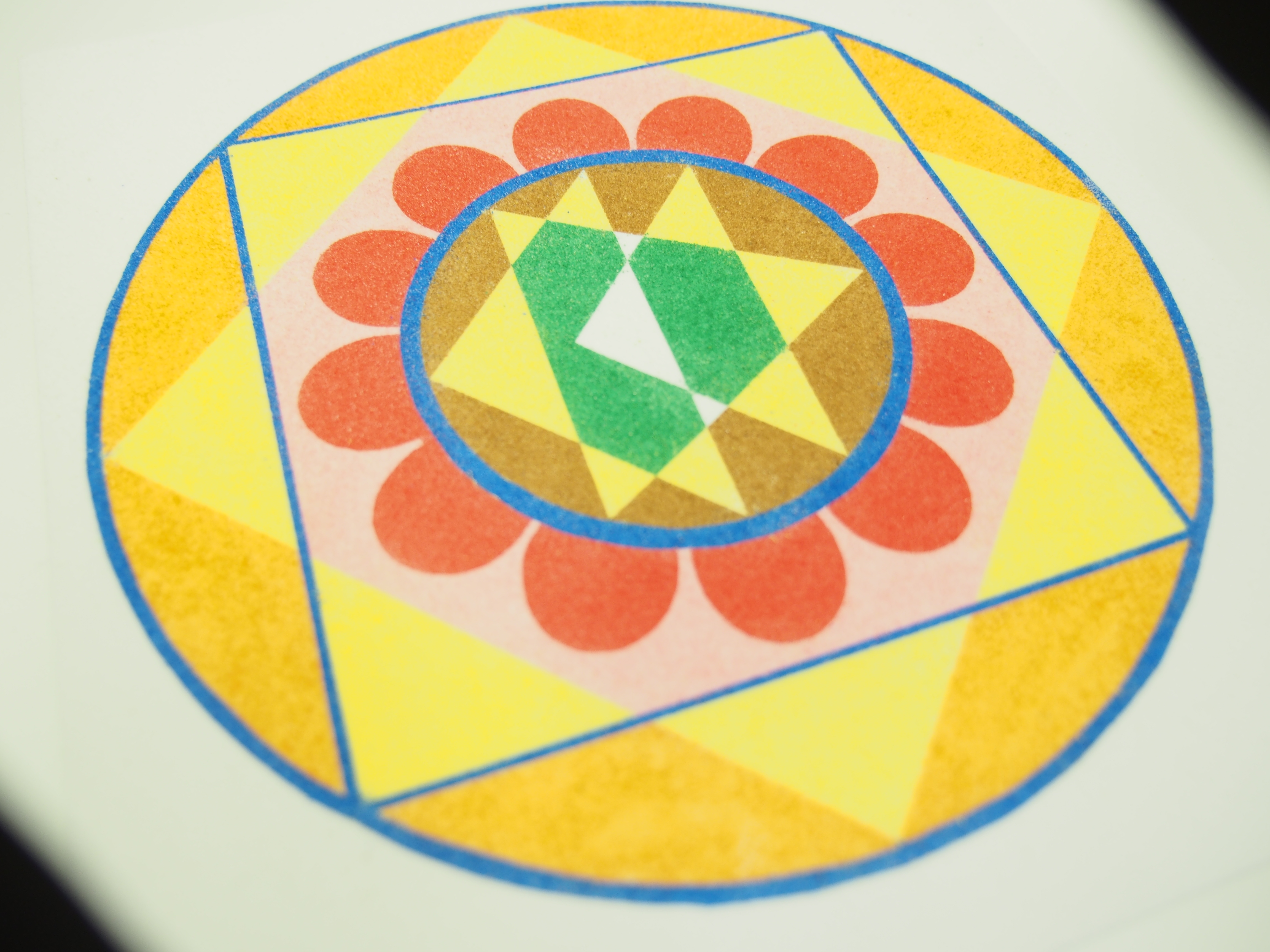 心理学部では公開講座「犯罪心理学入門」が行われ、多くの方に聴いていただけました。さらに、数々のワークショップが行われましたが、とりわけ新しいワークショップである「砂マンダラを作ろう!」では、みなさん時間をかけて熱心にマンダラ製作をされていました。