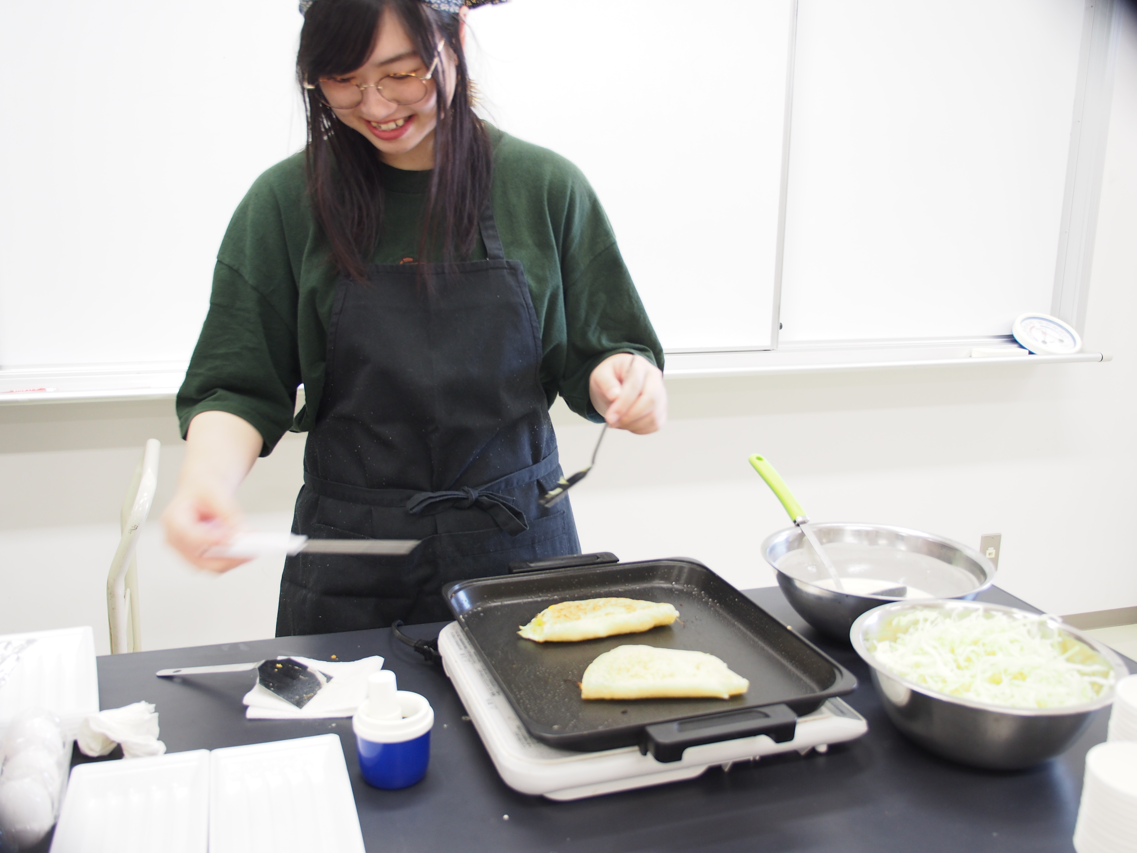 栄養学部では「味覚の世界を体験しよう」をテーマに「地元野菜入りシフォンケーキ」の試食や、『キャベツ焼き』などが「おいしかった」という感想が多く寄せられました。また、液体をブヨブヨのカラービーズに変える実験などが行われました。
