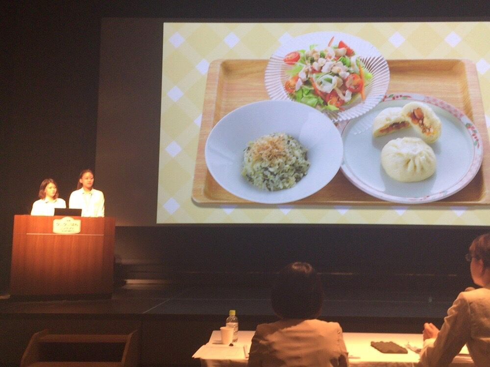8月25日、「ご当地タニタごはんコンテスト」の関東・甲信越ブロック予選会が横浜市西区みなとみらいランドマークプラザで行われました。予選会は、10チームが出場し、全国大会進出を競いました。本学からは、栄養学部栄養学科3回生4人の2チーム(「宇都宮餃子他(栃木)」=斎藤七菜さん・井上瑛子さん、「おやき(長野)」=中元亜里沙さん・山本奈生さん)が参加しました。落ち着いたプレゼンテーションで分かりやすく、しっかりアピールができ、本人たちも満足がいく発表になりました。残念ながら、全国大会への出場のチャンスは逃がしましたが、大健闘しました。