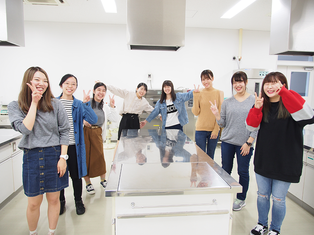 JAグループの一般社団法人家の光協会が主催する「第16回 ザ・地産地消 家の光料理コンテスト」に、食品加工研究部が考案した「小麦粉アレルギーでも大丈夫! トマトとリンゴとさつまいものケーキ」が見事、佳作に入選しました。小麦粉アレルギーや野菜嫌いの人に配慮し、スポンジケーキに米粉が用いられ、珍しいトマトのジャムを使用しています。コンテストには部員全員で取り組み、1か月ほどかけてレシピを仕上げました。食品加工研究部では、グレープフルーツ、甘夏、トマトなど多種多様なジャムづくりの研究が行われています。現在のメンバーは、2回生が4人、1回生が5人。栄養学部栄養学科2回生(写真2枚目)の近藤ちひろさん、石井万由佳さん、岩本彩里さん、金井ちはなさんは、「1回生も、どんどんコンテストにチャレンジしてほしい!」と後輩にエールを送りました。トマトジャムは紅葉祭(11月3日開催)で販売予定。