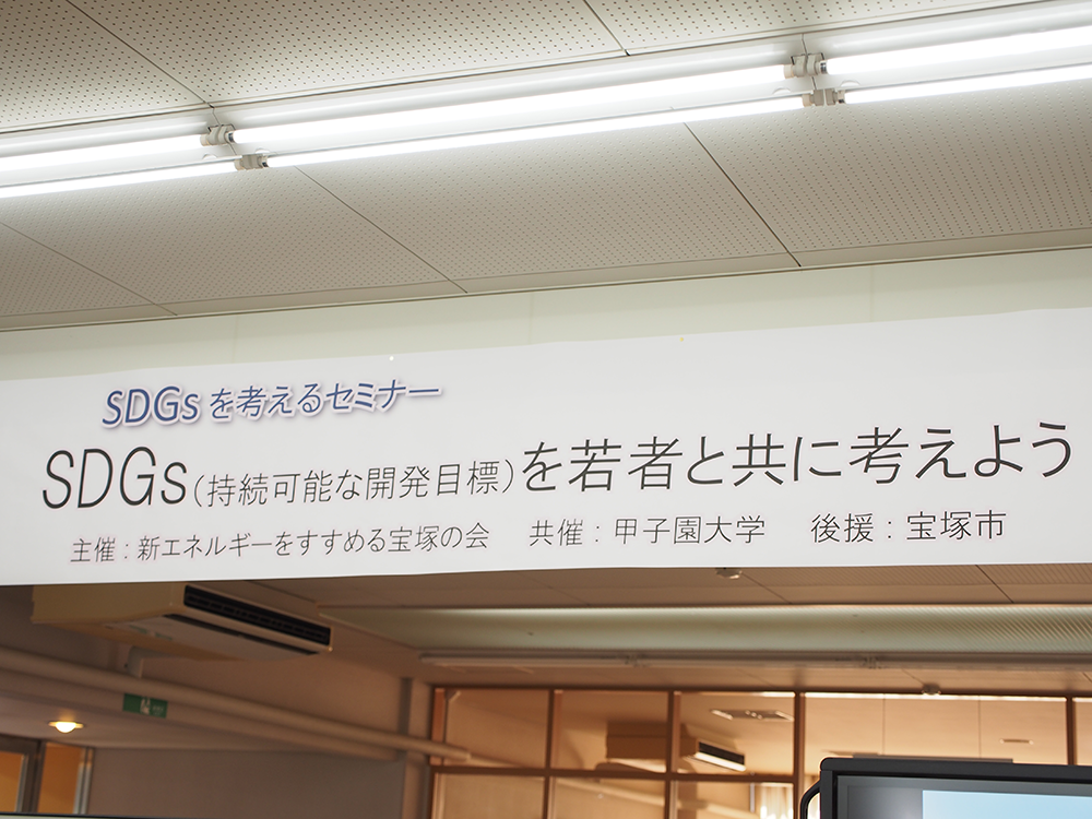 10月6日、セミナー「SDGsを若者と共に考えよう」(主催:NPO法人新エネルギーを考える宝塚の会、後援:宝塚市)が本学で開かれました。SDGsは持続可能な開発目標で、世界が今解決すべき問題を17に掌握。国連がその実行を推奨する世界レベルの取り組みです。その中に、本学栄養学部フードデザイン学科が取り組んでいる「食と農とエネルギー問題」があります。宝塚市にあるNPO団体と本学で、SDGsの浸透拡大に取り組みました。