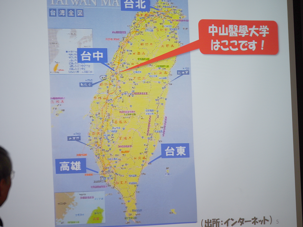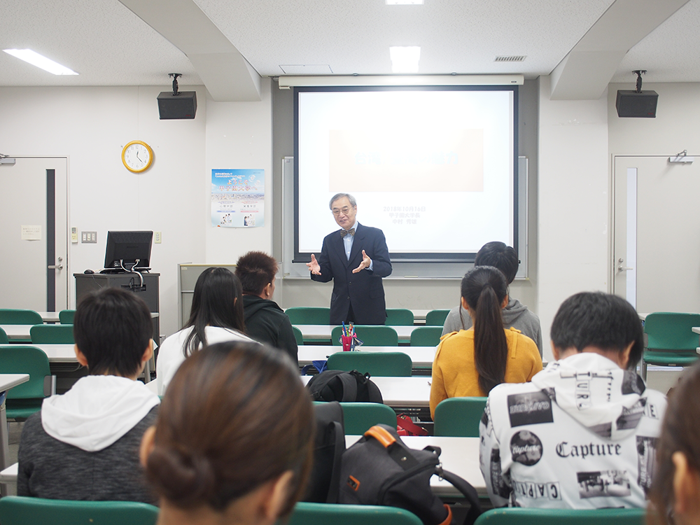 お知らせ2018.10.16 台湾研修旅行に向けて、事前研修が行われました 2019年3月10日~13日に台湾研修旅行が催されます。研修旅行では、台湾の中山醫學大學を訪問し、現地の教員や学生との交流を通して台湾の食文化や心を学びます。これに先立ち、10月16日、事前研修として本学の中村学長が参加予定の学生に対して、台湾の文化や歴史について講義を行いました。今後も、数回にわたり事前研修を行い、台湾旅行の準備を進めていきます。 発信部署:事務局 « 前の記事へ 次の記事へ »