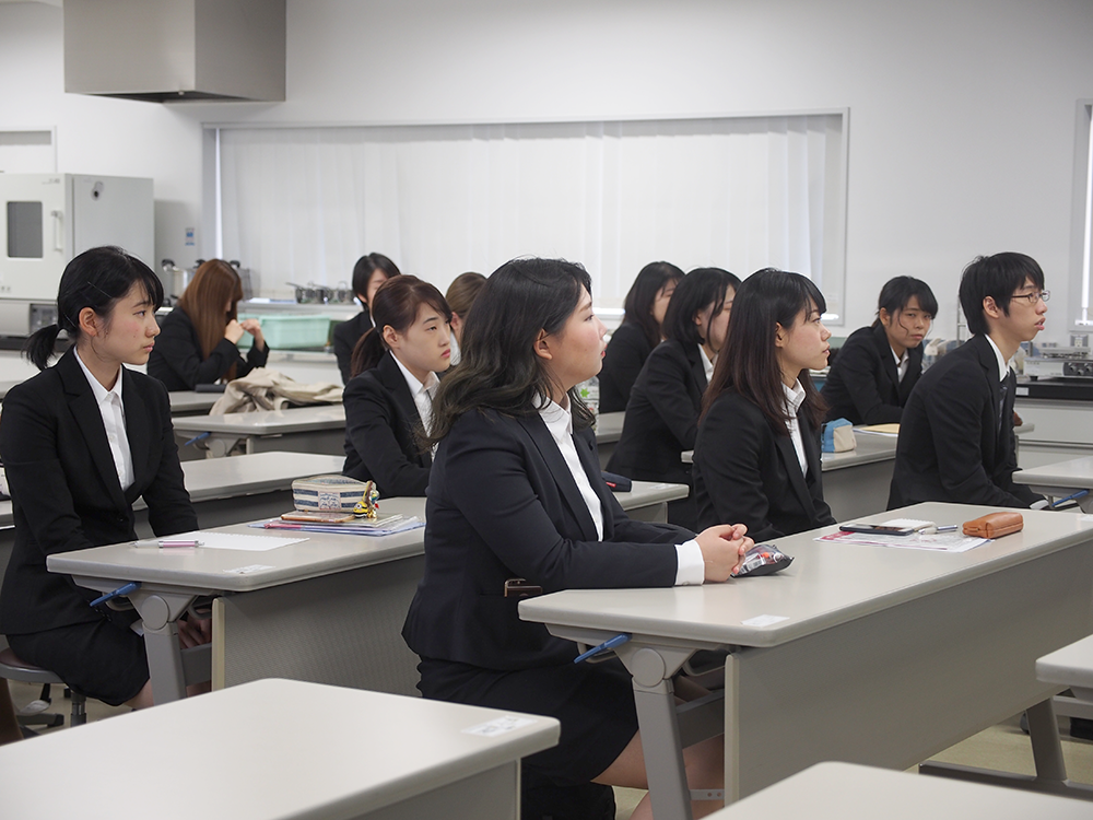 あなたが考案した食品が商品化され店頭に並び、消費者に「食」の幸せを届ける――本学栄養学部はそんな夢を強力にサポートします。そのひとつとして、著名な食品企業の第一線で活躍する方々を招いて、食品開発の現場を紹介する「フードスペシャリスト論Ⅱ・食品開発論」という特別講義があります。