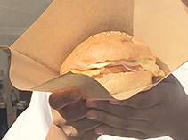 そのなかで、ベーコンとチーズを基調に、だし巻きと明太子という日本的な食材を使った自由な発想から生まれた難波さんのハンバーガーも大好評でした。難波さんのレシピを商品化して、販売した地元の有名店「ここ弁当」の竹内剛代表オーナーは、「フェスタはわずか2日間の開催にもかかわらず、『昨日食べて非常に美味しかったからまた今日も…』という複数のリピーターさんがついたり、購入後にお礼を言いにわざわざ再来していただいた方もいらっしゃったりしました」と話していました。