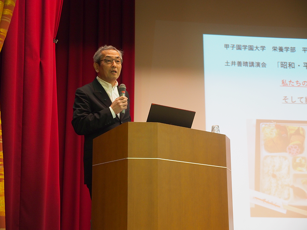 甲子園大学と甲子園短期大学の客員教授に就任した土井善晴先生の特別講義が11月2日、本学の講堂で行われました。「昭和・平成そして新時代へと繋ぐ『食』」が今回のテーマでした。