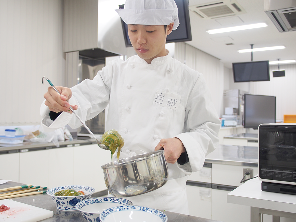 栄養学部栄養学科3回生の岩城育海さんが12月20日、兵庫県の広報紙「県民だよりひょうご」の取材を受けました。同紙には、栄養士を目指す学生が考案した旬の食材を使ったレシピを紹介するコーナーがあります。今回は、冬に旬を迎える白菜を使った料理レシピ「白菜の梅あんかけファルシー」を考案した岩城さんの取材のため、県の広報担当者が本学に来学されました。