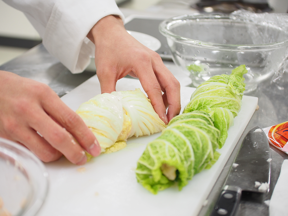 このメニューは、白菜を一人120gも摂取できます。ひき肉料理のうま味の強さが際立ち、食べごたえがあります。男性も女性も食べ終えて満足できる料理です。