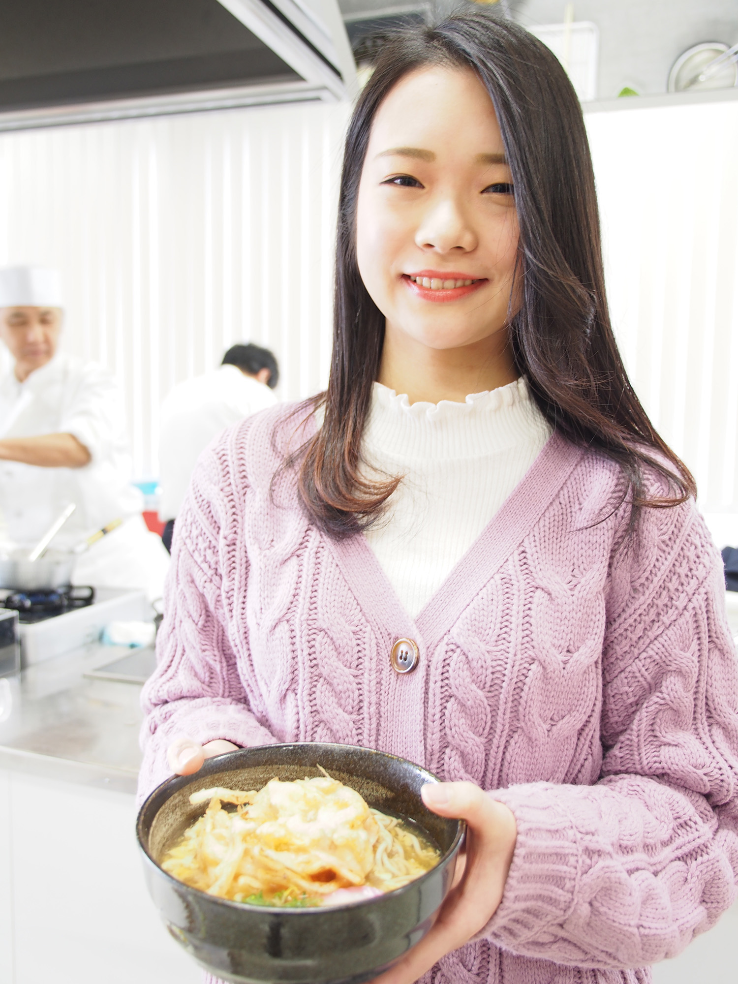 栄養学部の長谷川唯さんの考案した「桜さくサクかき揚げそば・うどん」が発売されました!