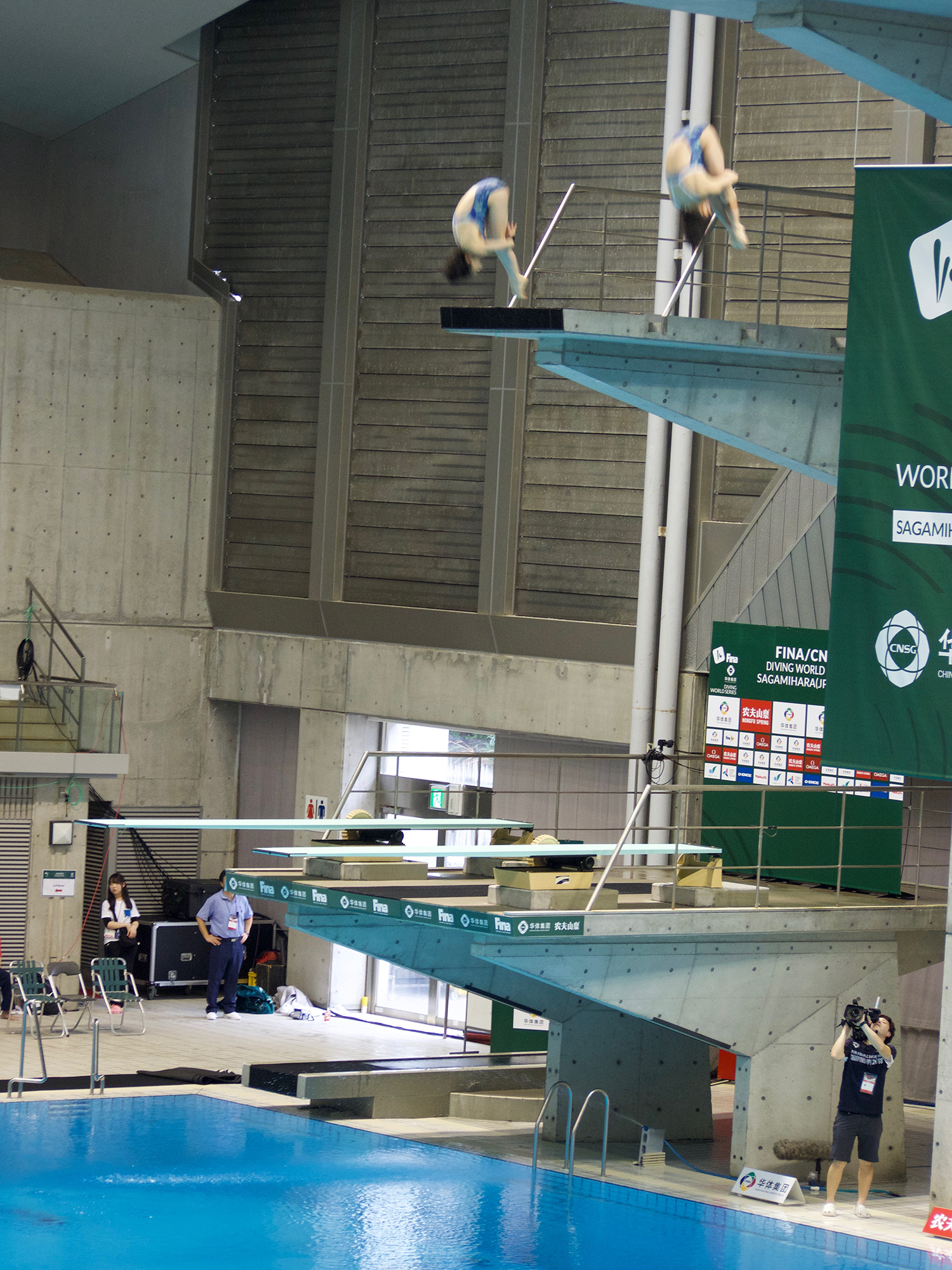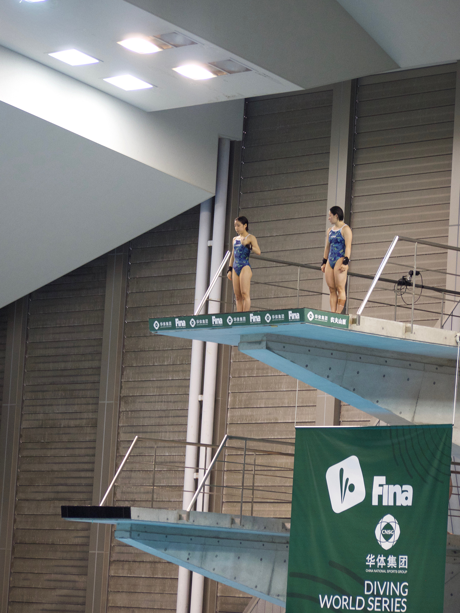 結果は、女子高飛シンクロ(写真)は7位、ミックス高飛シンクロは3位と2年連続でメダルをとることができとても自信に繋がりました。今年7月には世界選手権があります。女子高飛シンクロはオリンピックにも繋がってくるので更に練習して完成度を高めたいと思いました。