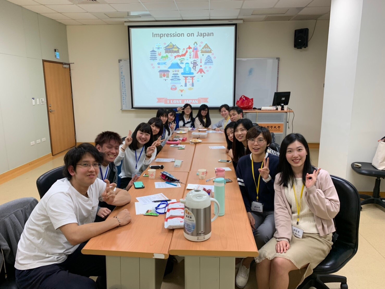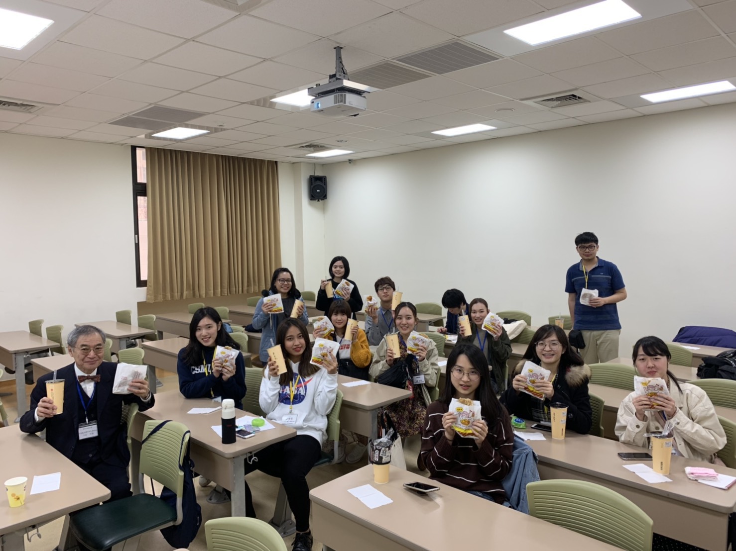 中山醫學大學栄養学部の張先生ほか、みなさんの温かい出迎えを受け、贈り物の交換を済ませたのち、さっそく正心楼という13階建ての建物に午前中の授業に向かいました。