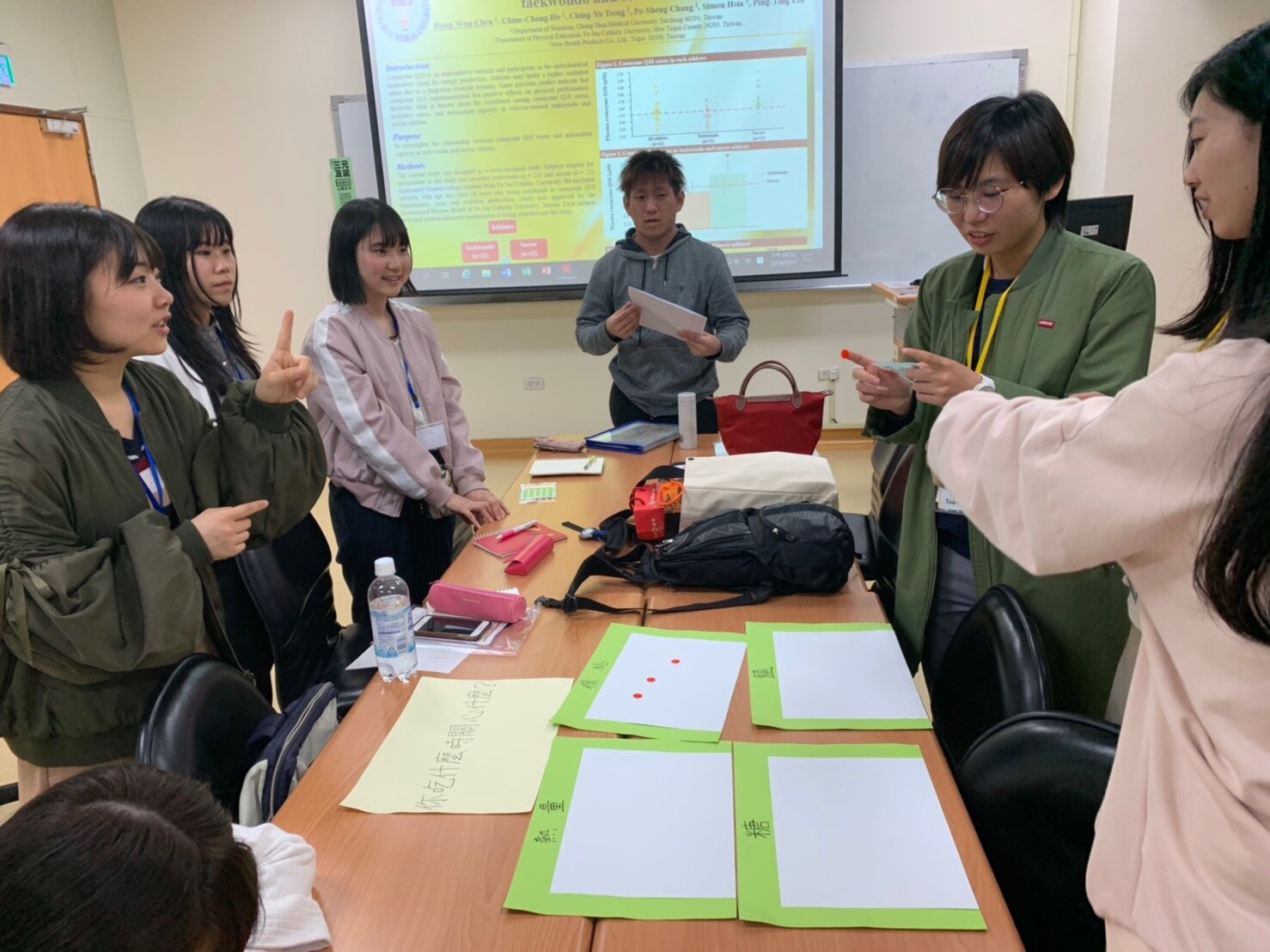 最初は同大の栄養学専攻の林以勤助理教授から、台湾の栄養事情、なかでも肥満問題に関する講義を受けました。続いて本学栄養学部の末武教授が日本の状況をユーモアたっぷり、かつ簡潔に報告しました。活発な質疑も行われました。