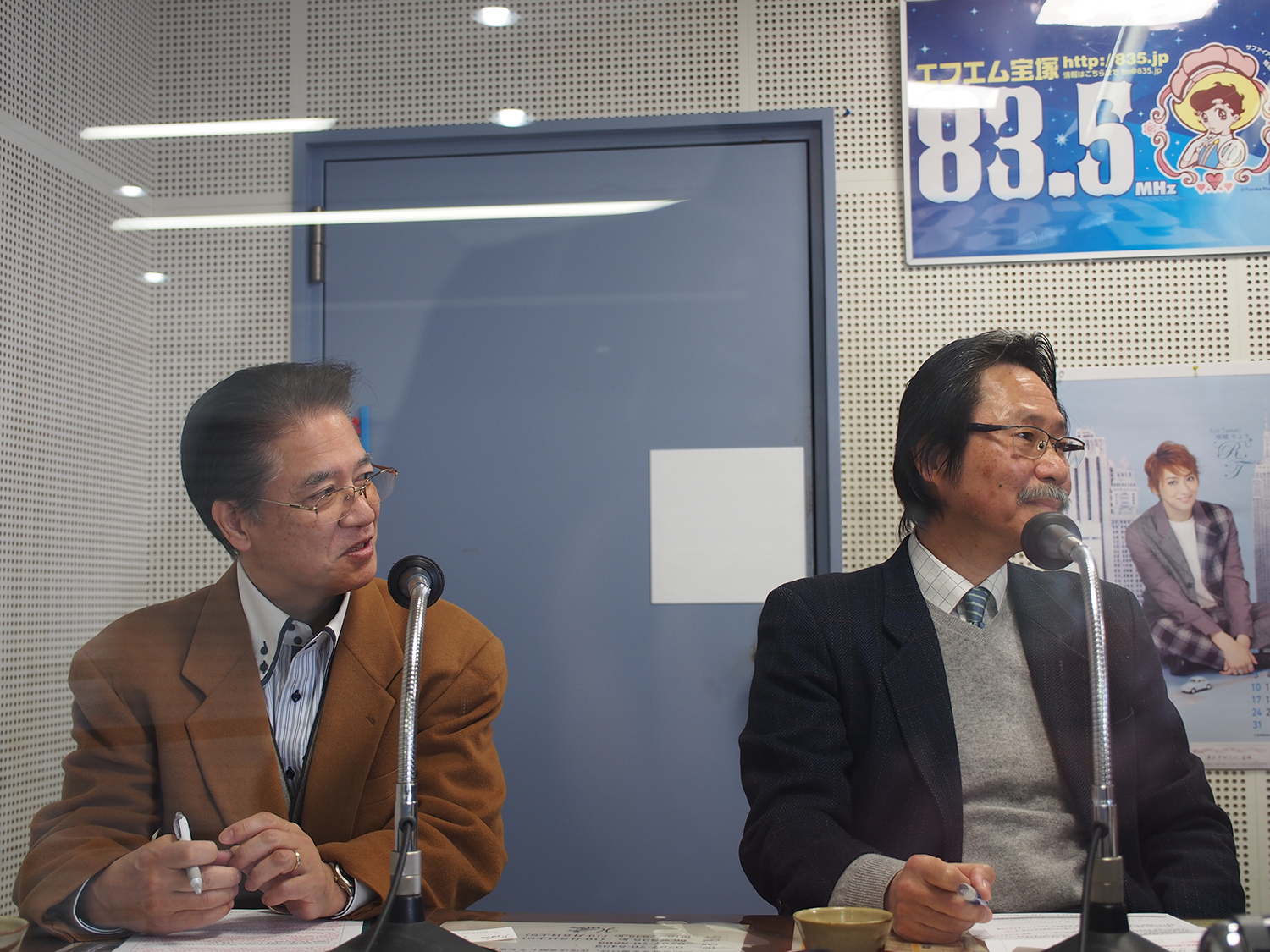 宝塚市内で活躍する方をゲストに招き、その活動内容を広くリスナーに知っていただく、FM宝塚の番組「たからづか8丁目35番地」に栄養学部フードデザイン学科の鎌田洋一教授、心理学部現代応用心理学科の熊谷正秀教授が出演しました。18日に生放送で収録が行われました。