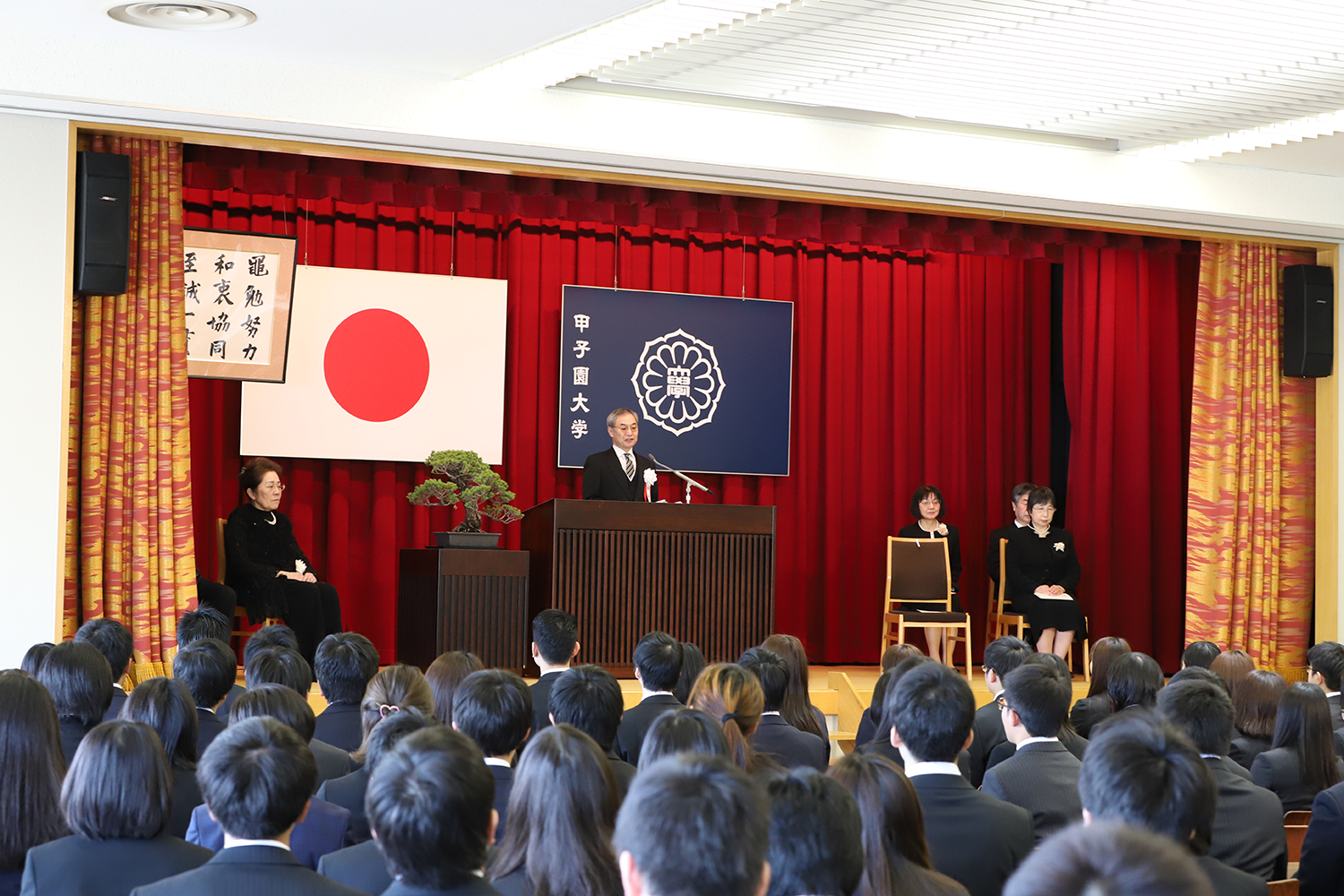 お知らせ2019.04.4 2019年度入学式を挙行しました 4月4日(木)、2019年年度甲子園大学入学式を学院関係者、大学教職員列席のもと、3号館大講堂で挙行しました。多数の保護者の方も参列されました。 中村秀雄学長が式辞を述べ、最後に新入生代表が宣誓を行いました。新入生は緊張のなかにも、期待に満ちた表情で式典に臨みました。式典終了後、部活紹介などが行われ、新たな学生生活をスタートしました。 発信部署:事務局 « 前の記事へ 次の記事へ »