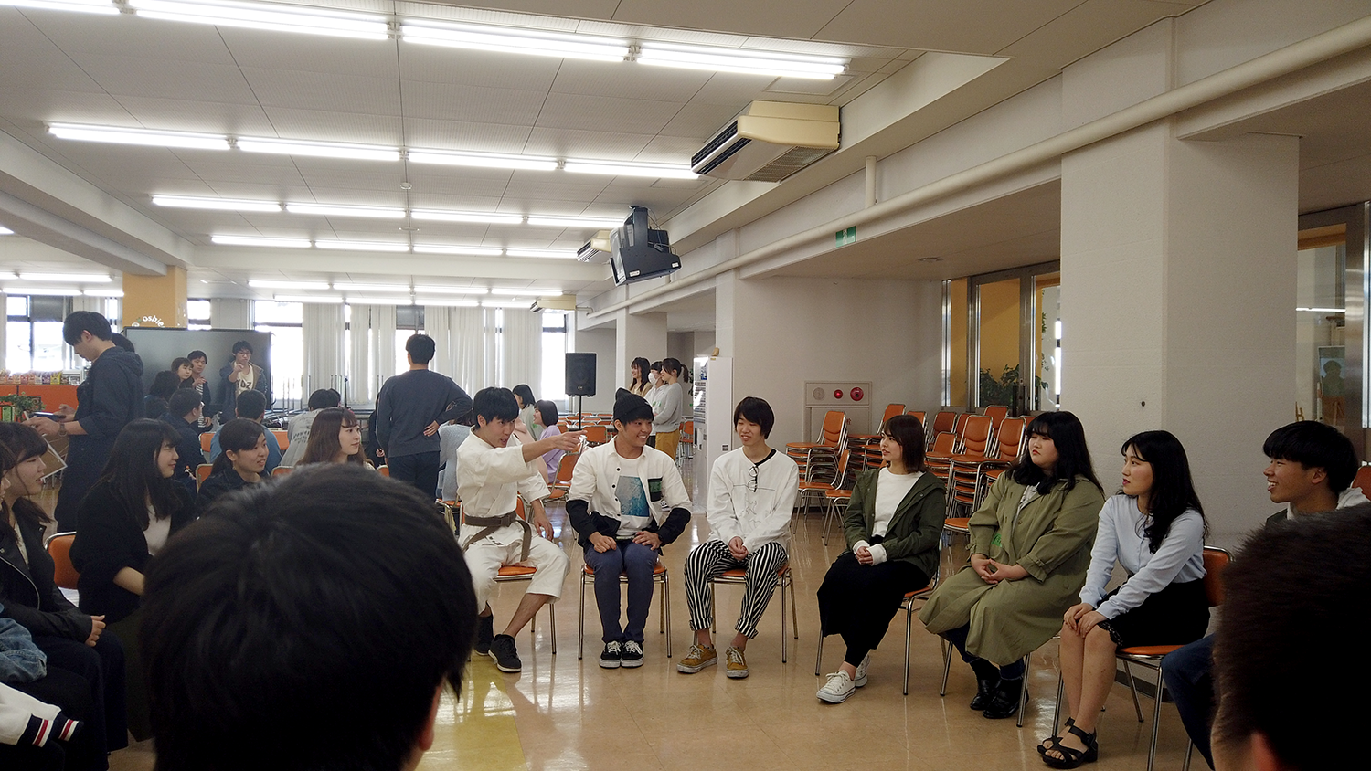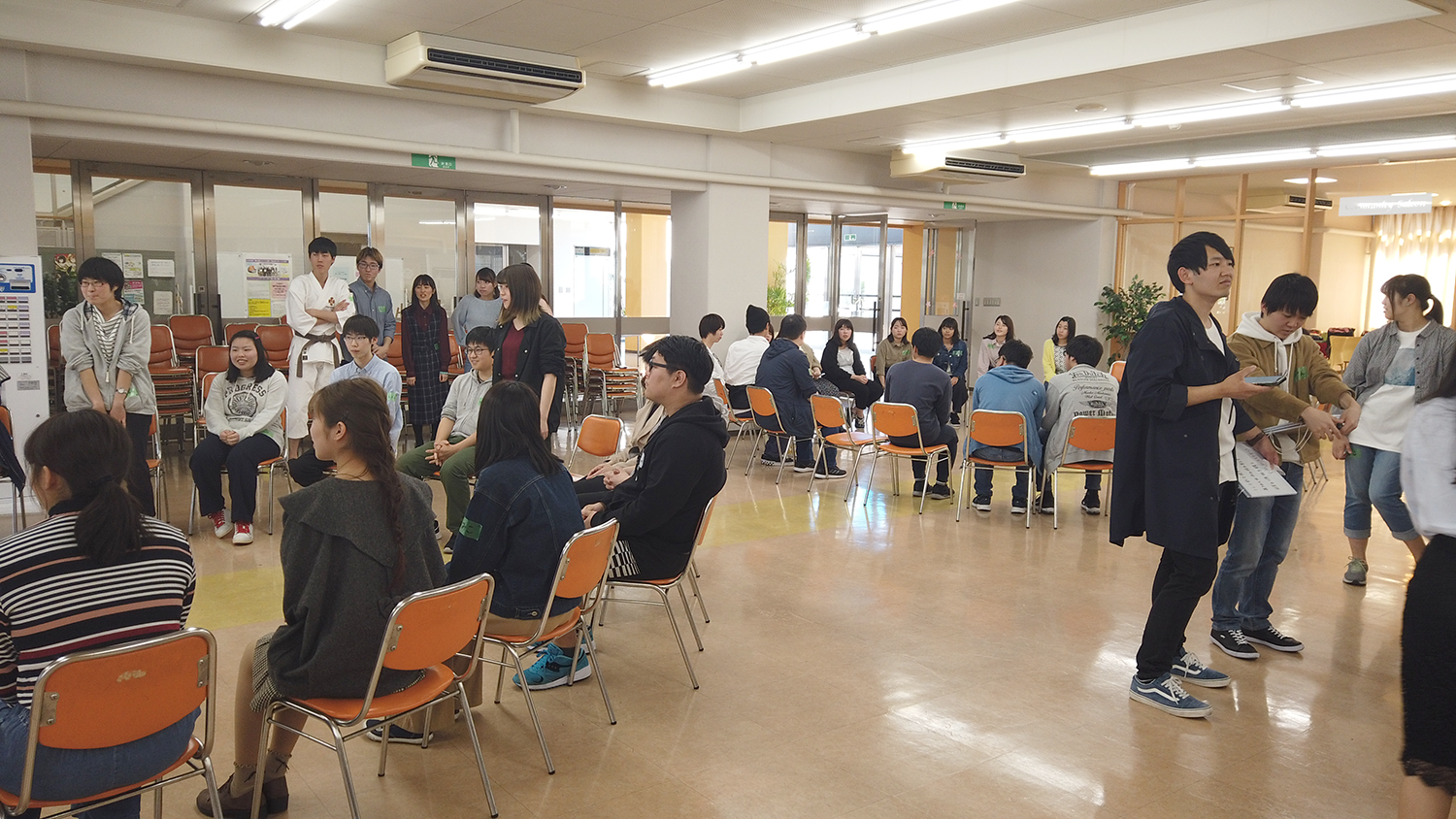 WHAT'S NEW2019.04.20 新入生歓迎会を行いました! 学生団体「甲友会」主催の新入生歓迎会が20日、開かれました。歓迎会には留学生を含め50名弱の新入生が集まり、サークルや部活動の紹介、パフォーマンスが披露された後は、上級生が加わり、自己紹介、ゲームなどが実施されました。初めは緊張の面持ちだった新入生も次第に気持ちが和らぎ、楽しい時間を過ごすことができました。これからの大学生活に期待や希望を抱いた様子でした。 発信部署:事務局