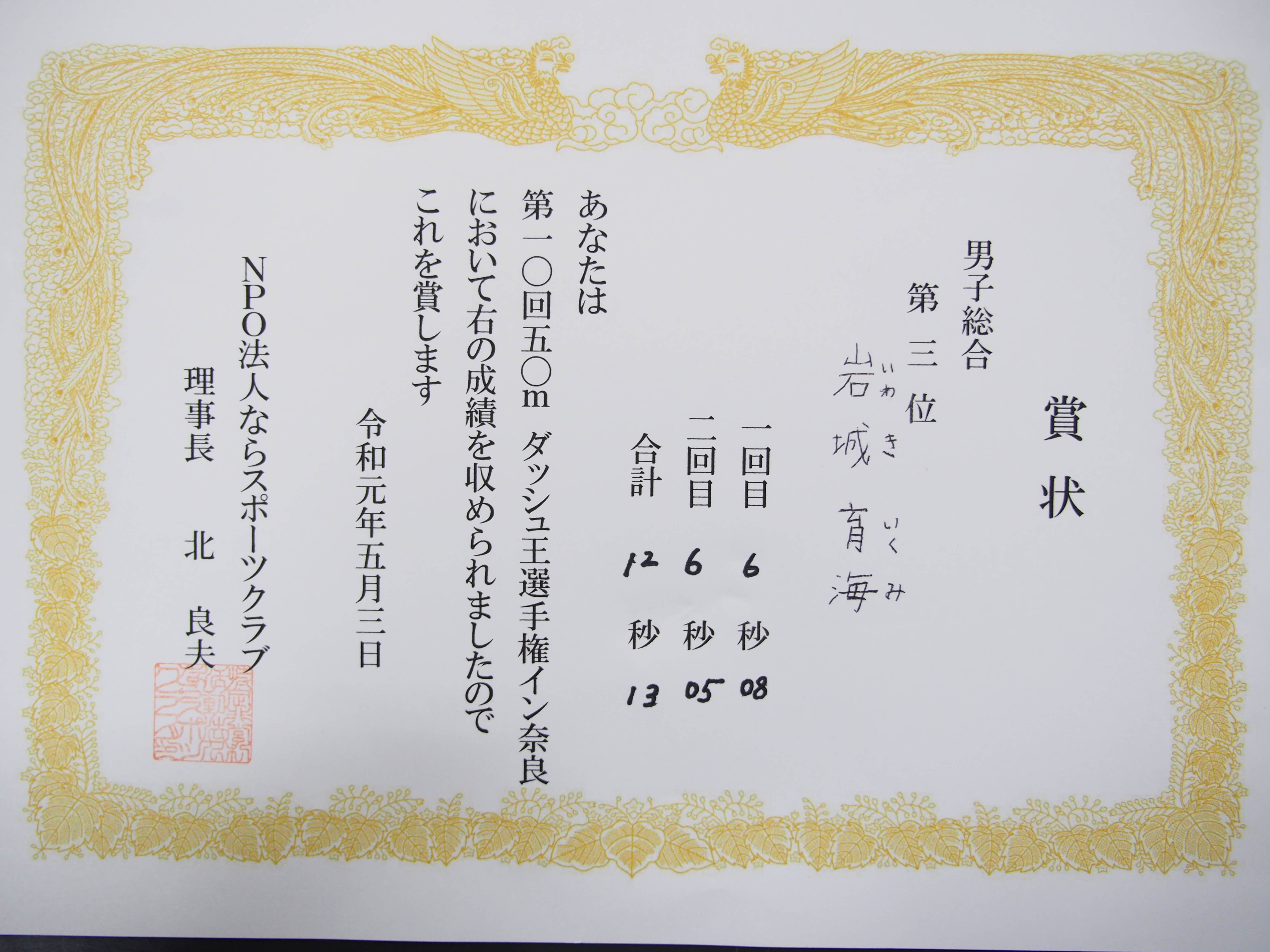 岩城育海さん、第10回50Mダッシュ王選手権大会in奈良で健闘!