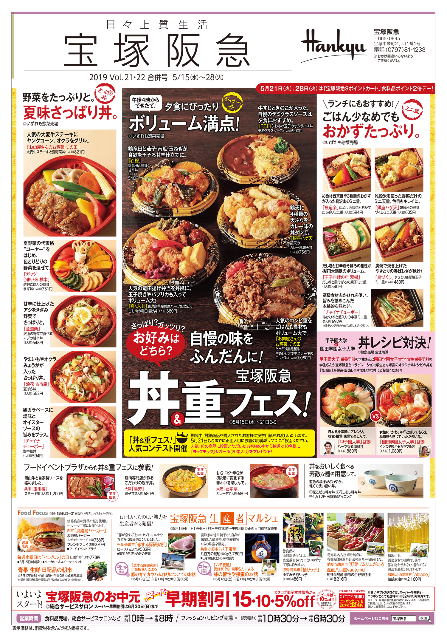 宝塚阪急の人気イベント「丼&重フェス」が15日から21日まで開催されます。その一環として、「甲子園大学・園田学園女子大学レシピ対決」と銘打ち、両大学から選ばれた海鮮丼が期間限定で販売され、その人気や売れ行きを競います。