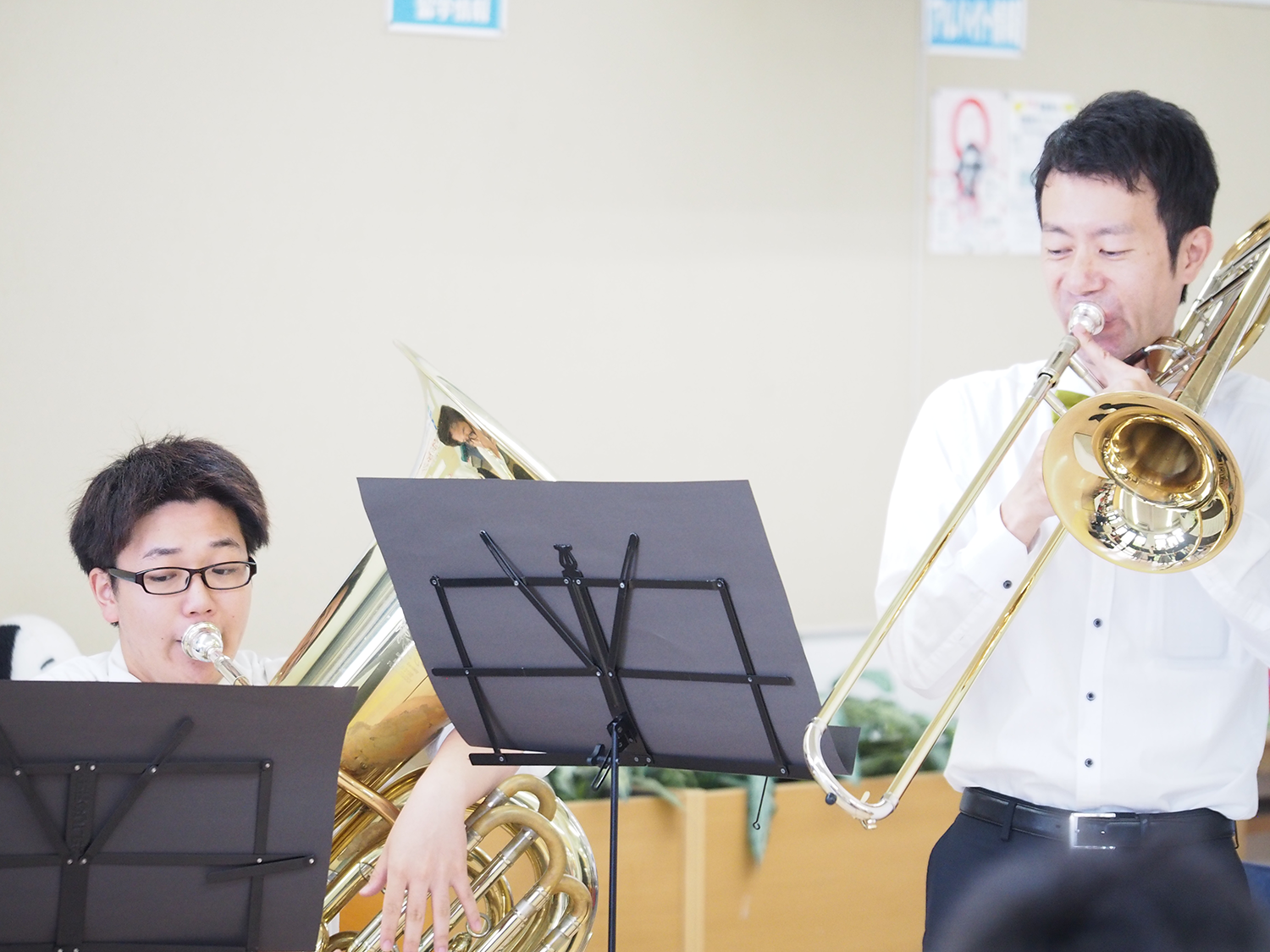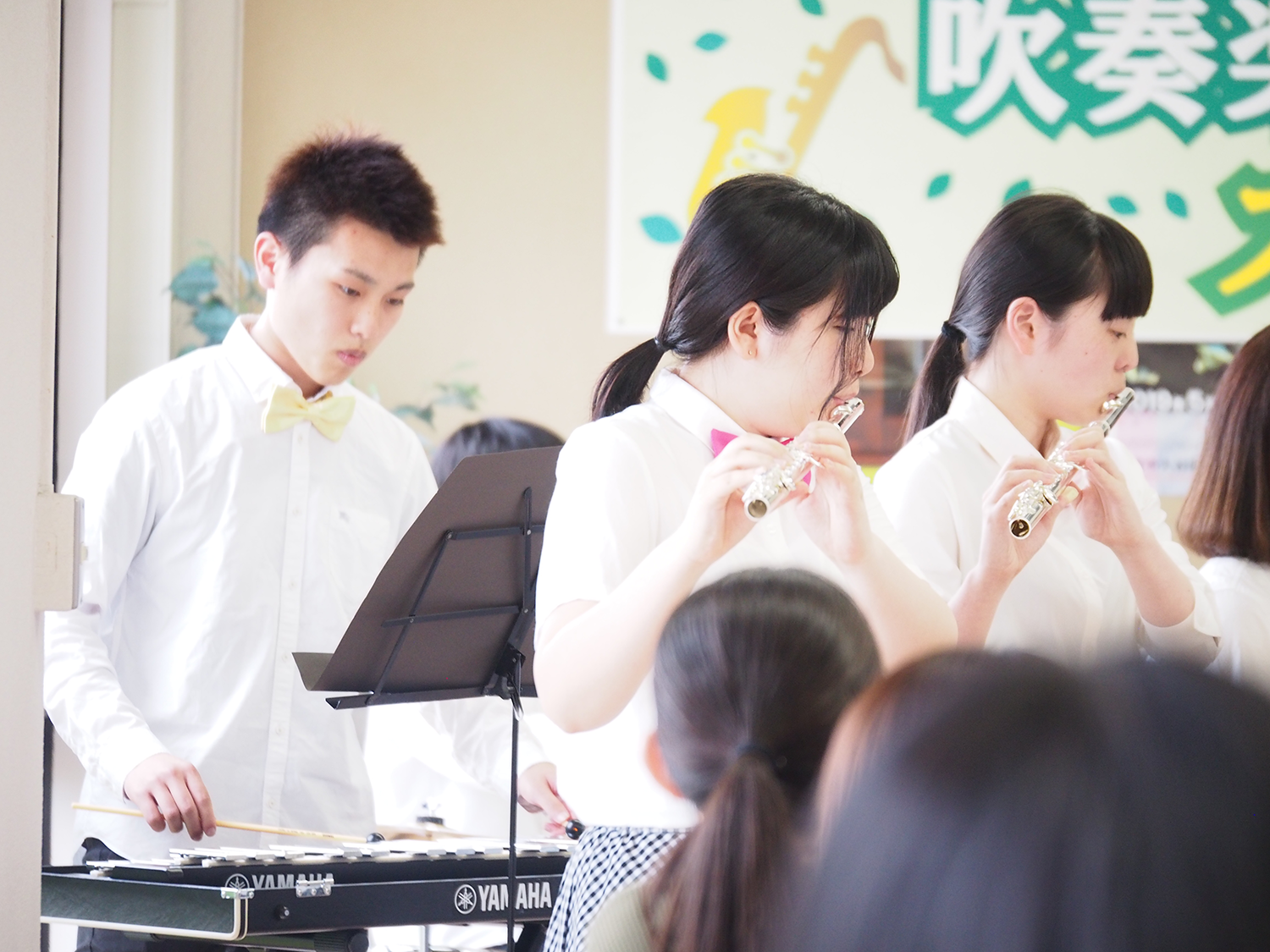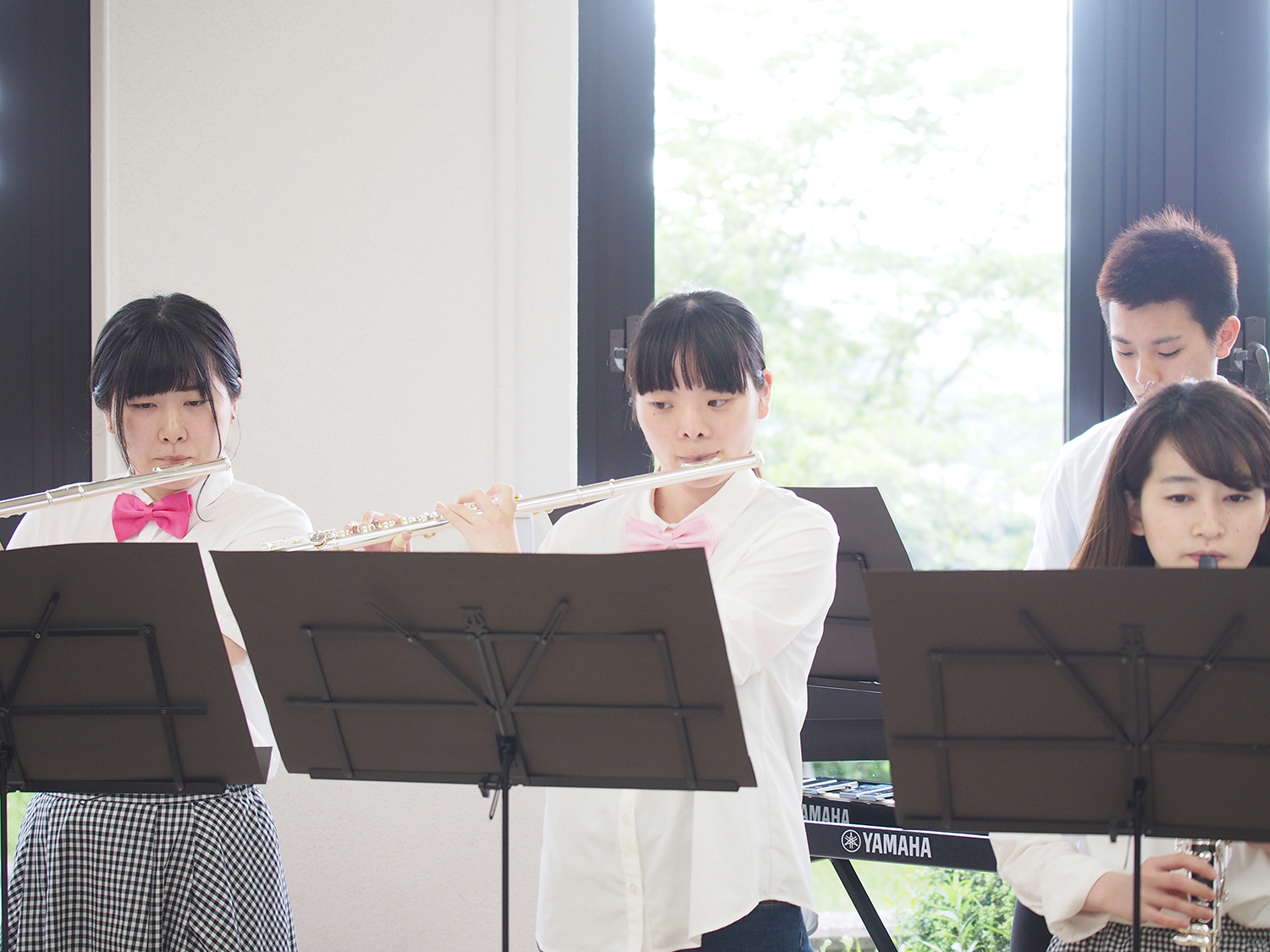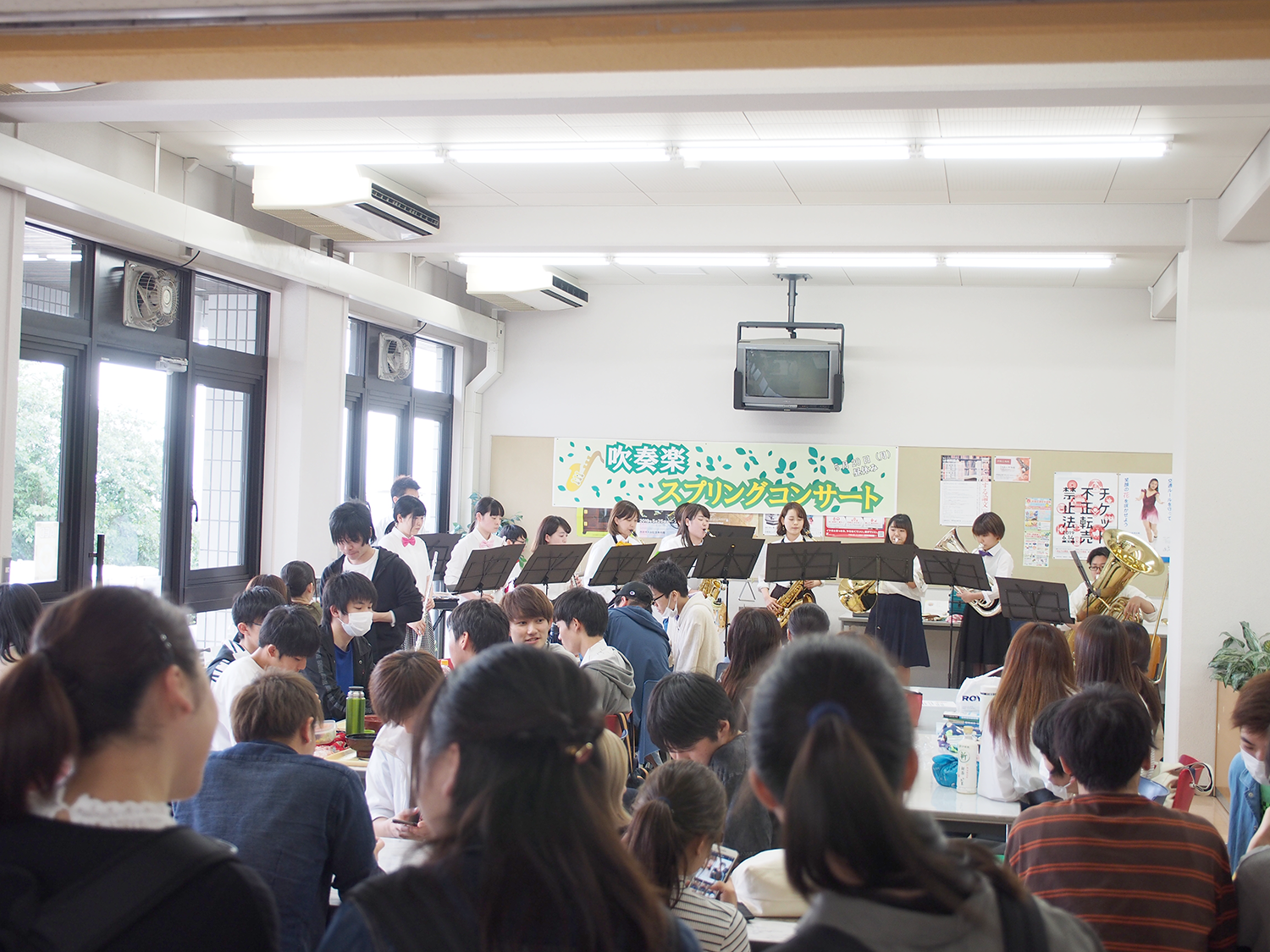 WHAT'S NEW2019.05.20 吹奏楽部がスプリングコンサートを開きました 吹奏楽部は毎年恒例のスプリングコンサートを20日、食堂前学生ホールで開きました。食堂に集まった学生や教職員らは、「春の童謡メドレー」「世界に一つだけの花」「男の勲章」などの演奏を聴き、昼休みのひととき春を感じていました。 発信部署:事務局