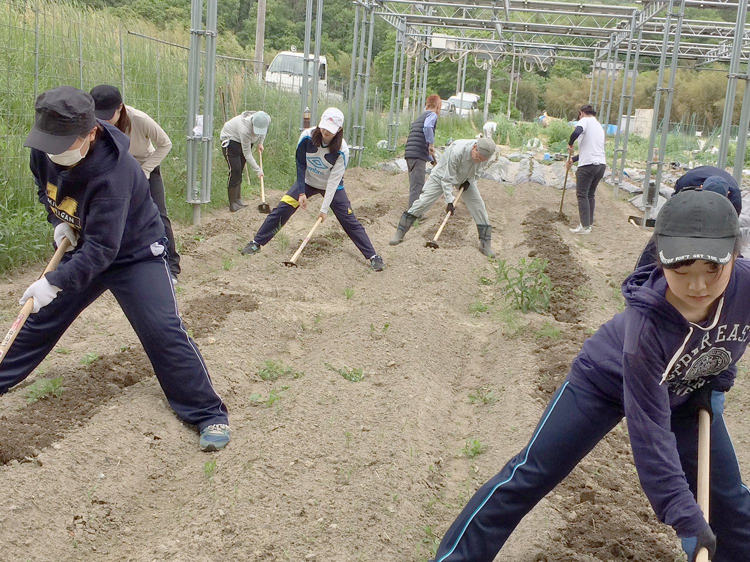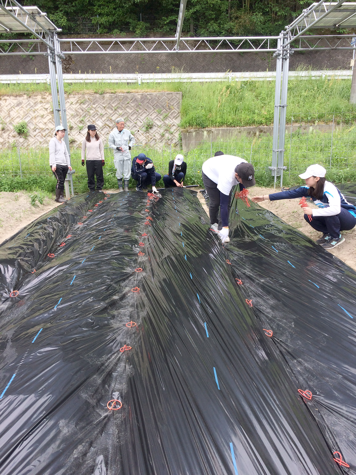 お知らせ2019.05.21 令和元年度の「食と地域の実践演習」が始まりました 昨年度と同様、宝塚西谷地域にあるソーラー農園の太陽光発電パネルの下で、サツマイモを栽培して、その収穫物を使ったレシピ開発、食のイベント活動をいたします。5月18日(土)、フードデザイン学科3回生11名と教員2名、ソーラーシェアリング協会会長の古家さんとで畑を耕し、雑草防止のマルチを張りました。1年間の演習が始まりました。 発信部署:事務局 « 前の記事へ 次の記事へ »