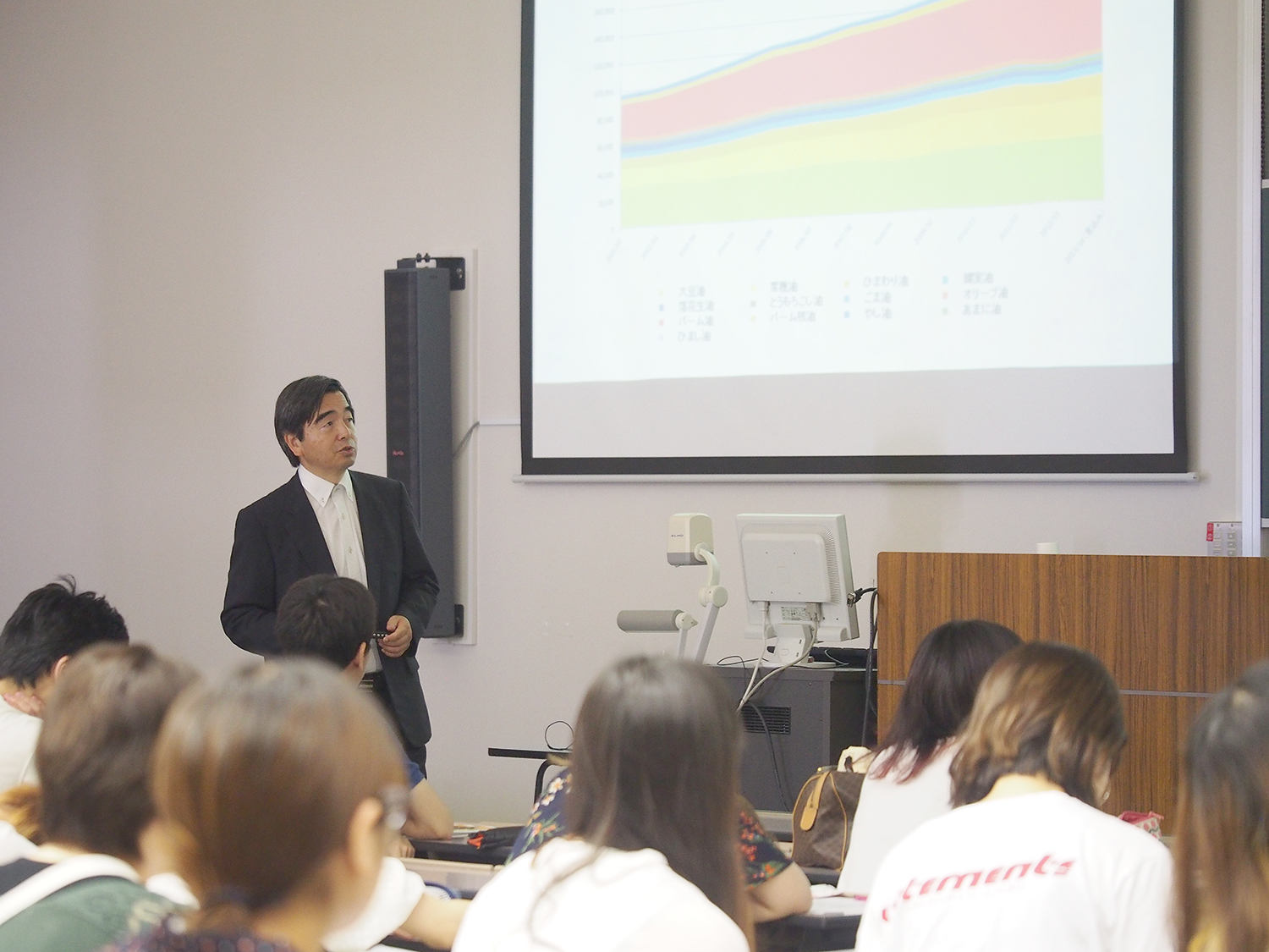 6月28日に日本植物油協会専務理事の斎藤昭先生をお招きしての出前授業が開催されました。タイトルは、「植物油に関する基本情報について」です。
