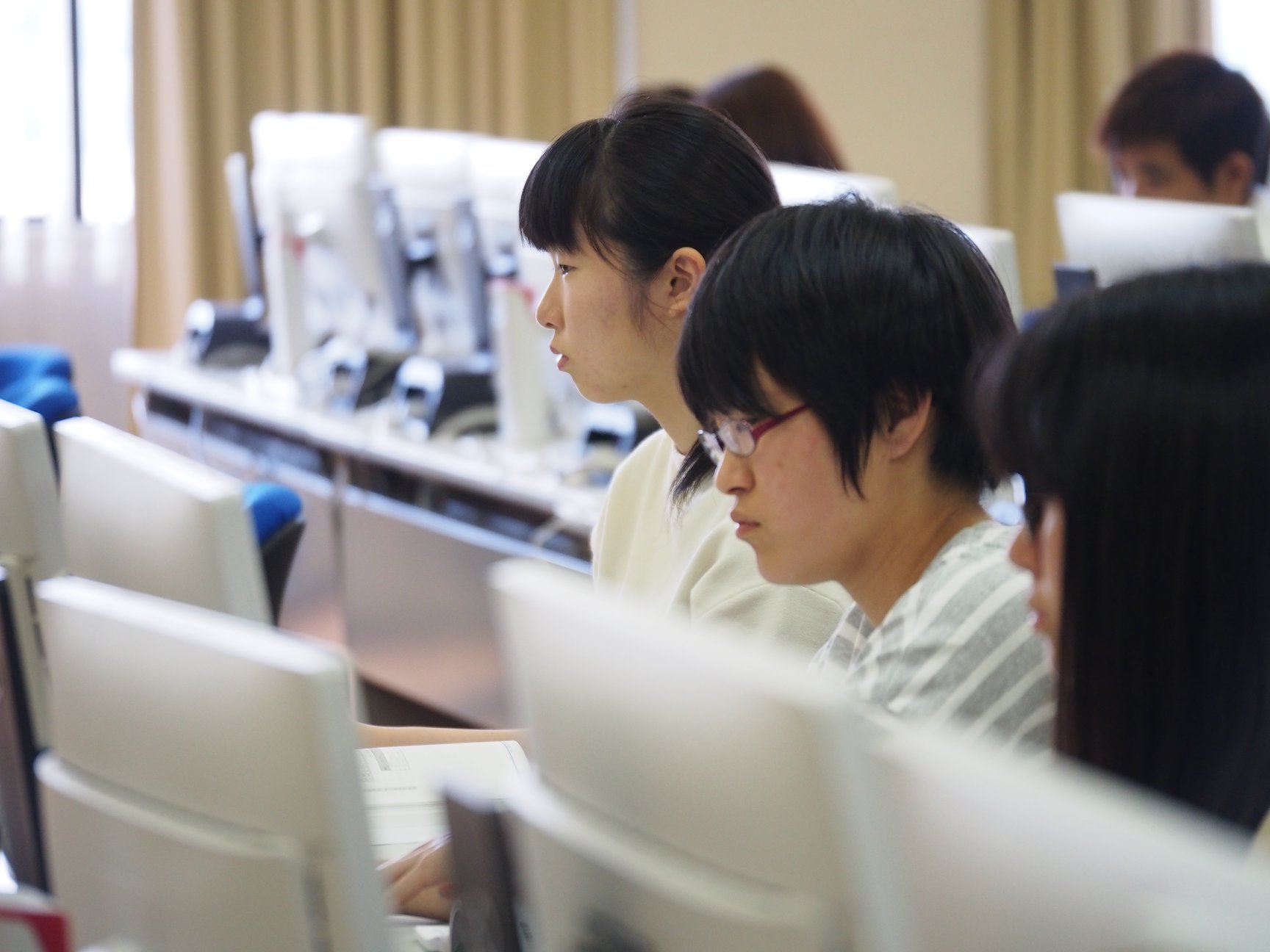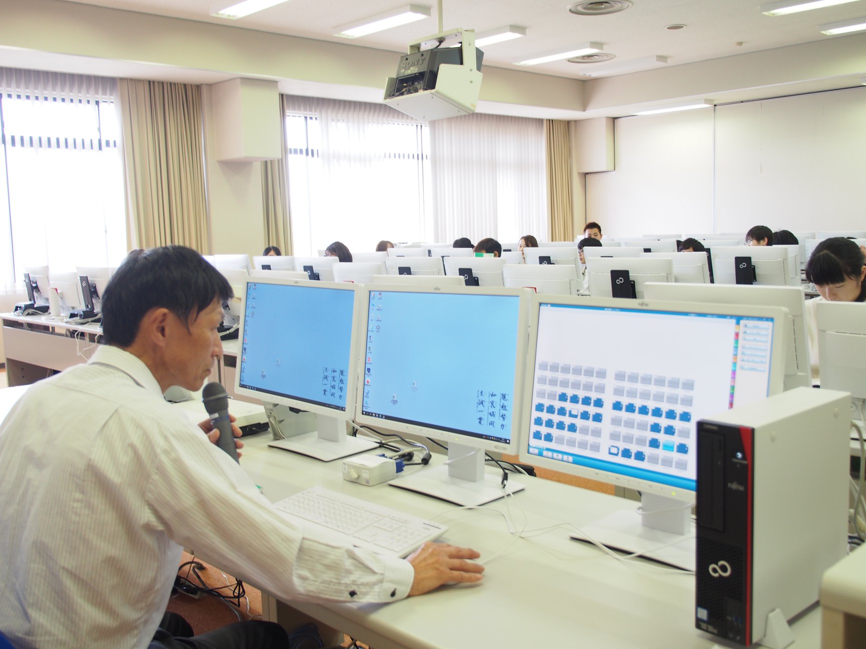 座席は自由。操作が分からない時には隣の人に聞き易くして、学生同士教え合う姿も見られます。