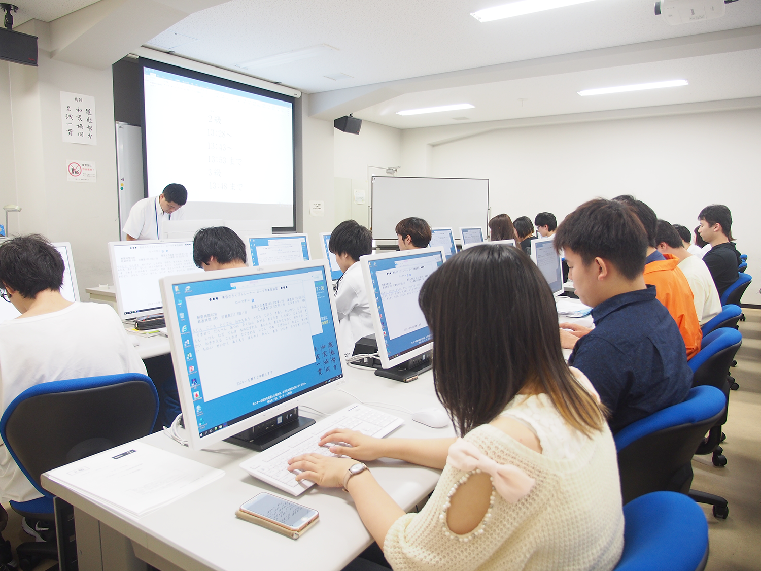 情報処理演習Ⅰの授業では、そこで習得したスキルを確認するため、日本語ワープロ技能標準試験という検定の受験を推奨しています。6月10日には、延べ34名の学生(3級が33名、2級が1名)が受験し、30名の合格者を出しました。