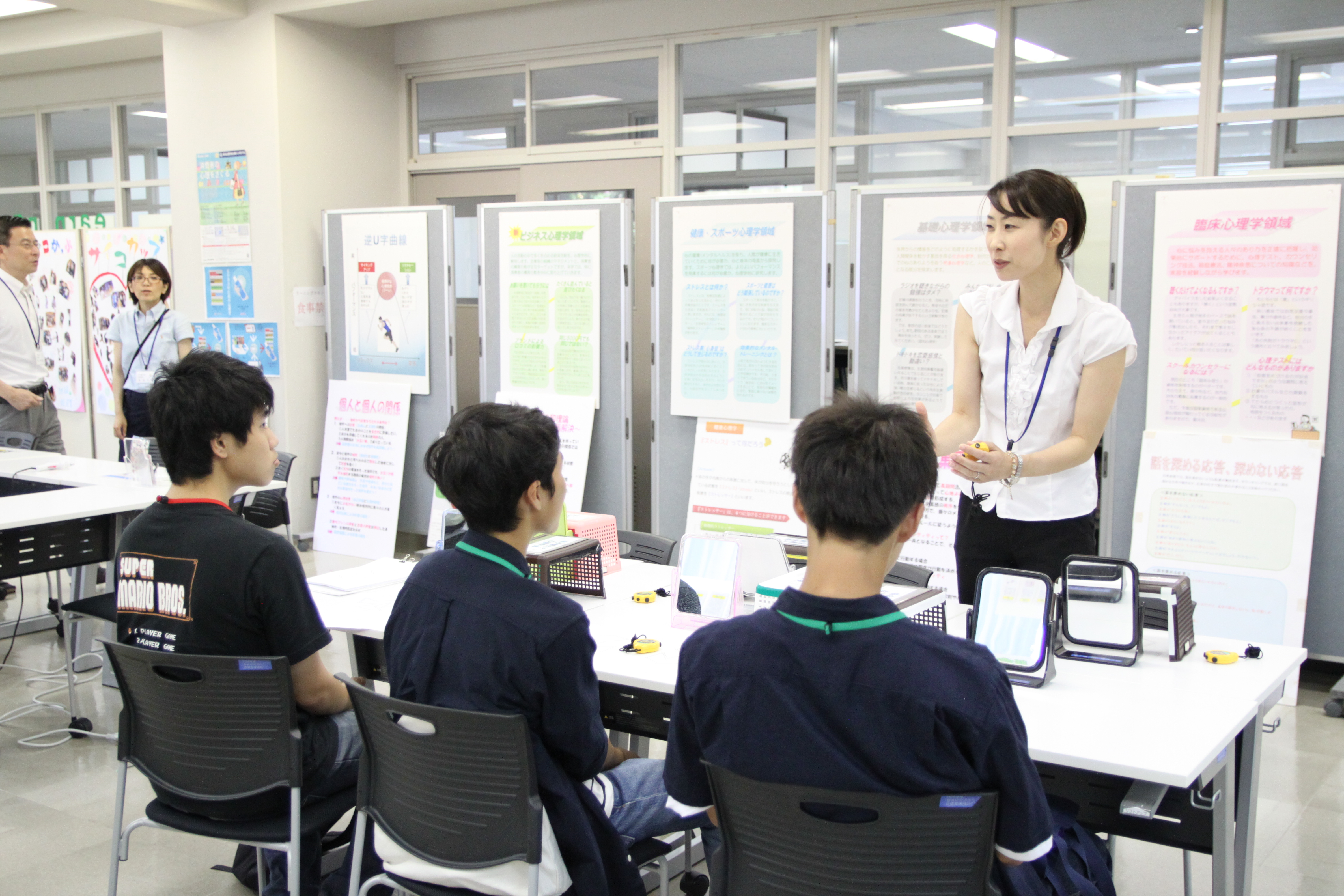 心理学部は、ワークショップとしてハンドスピナーを作ったり、講師の先生をお招きして音楽療法を体験してもらい、両学部とも盛況のうちに終了しました。